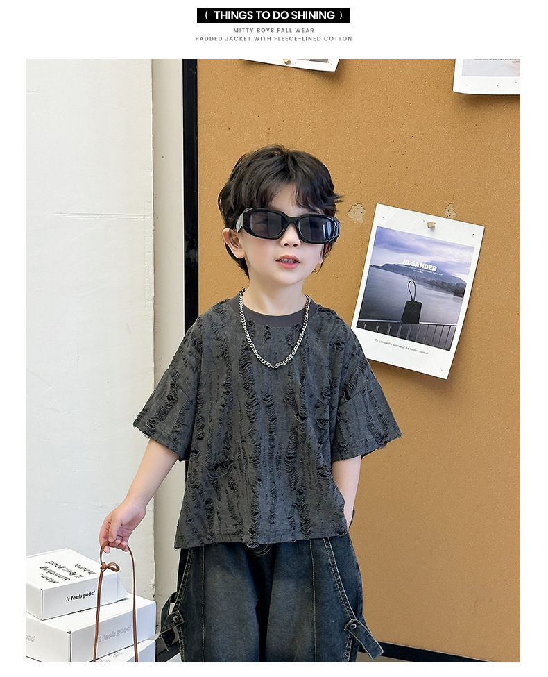 Mitty Children's Wear Children's Summer American 스타일 리핑 반팔 티셔츠 Boy's Trendy Cool Fried Street Distinctive Ragged Baby 반소매스토어 가기