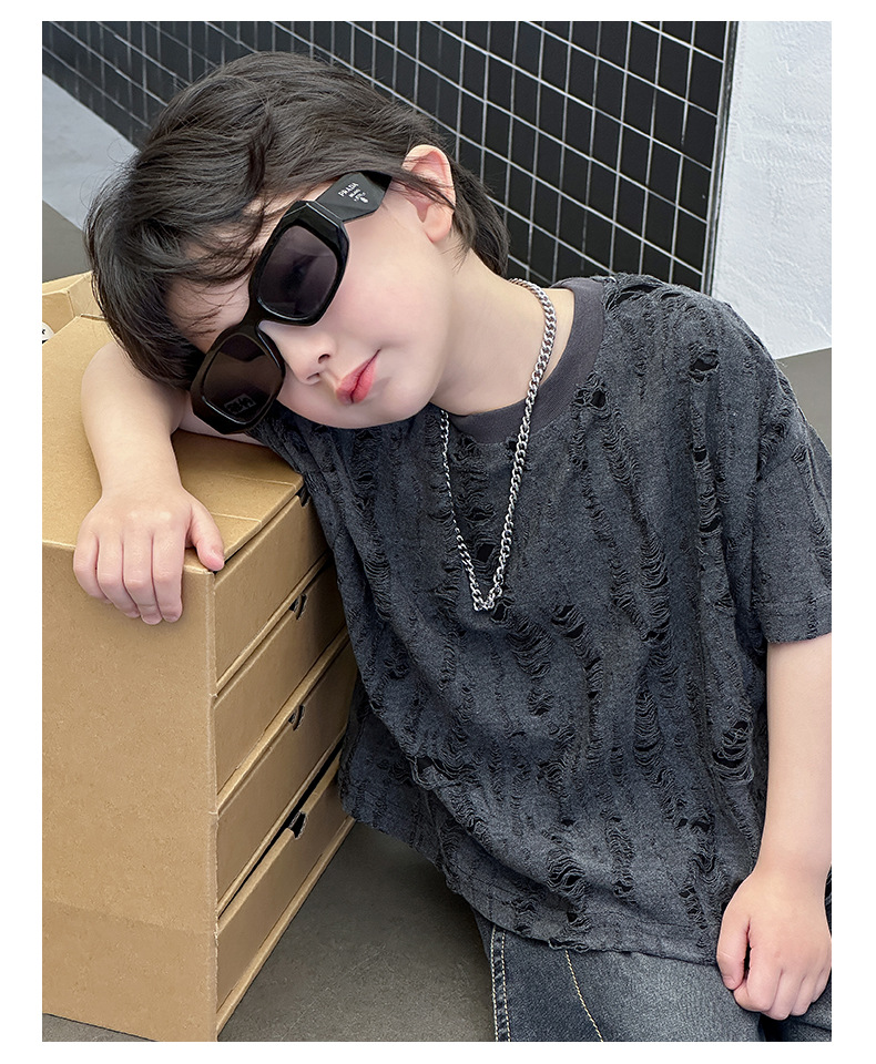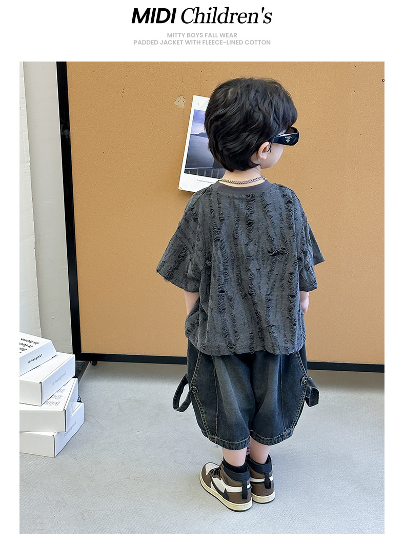 Mitty Children's Wear Children's Summer American 스타일 리핑 반팔 티셔츠 Boy's Trendy Cool Fried Street Distinctive Ragged Baby 반소매