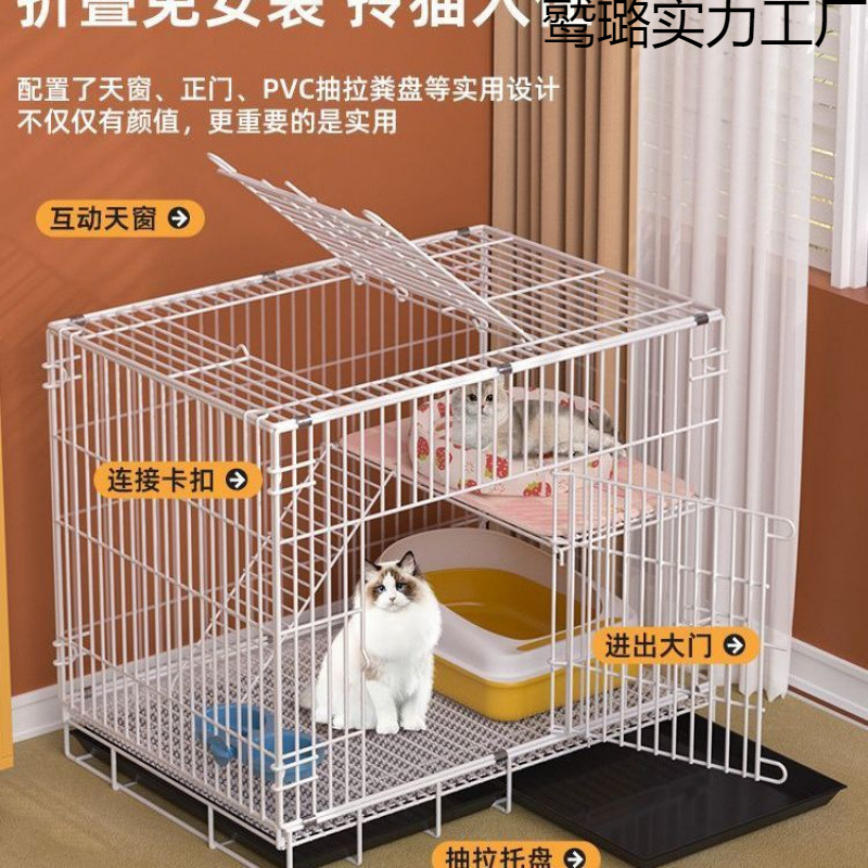 고양이 케이지 고양이 빌라 가정용 실내 슈퍼 큰 공간 고양이 집 고양이 집 접히는 작은 암호화 된 이중층 철 고양이 케이지