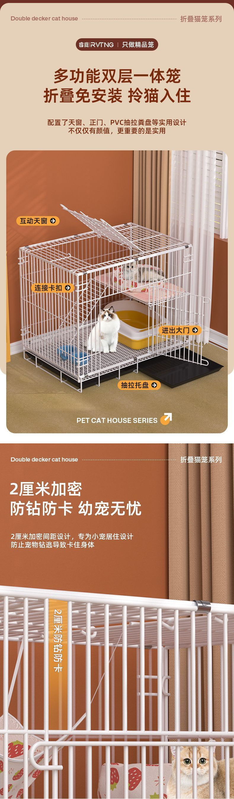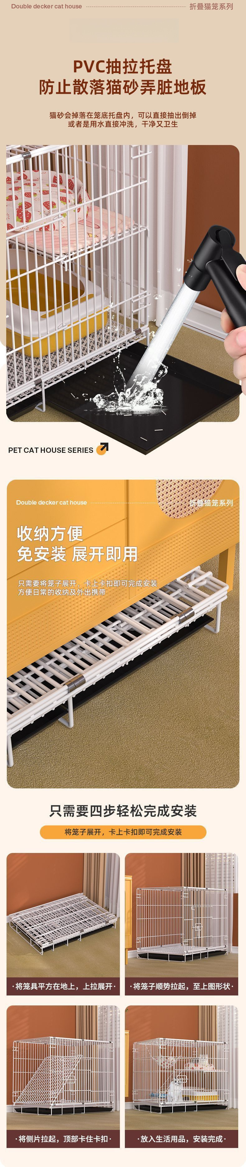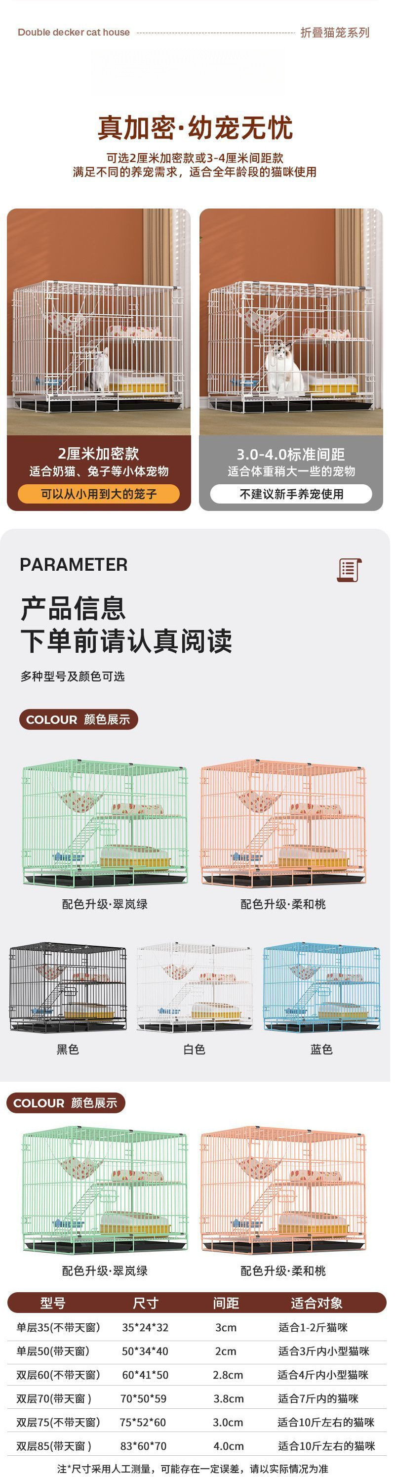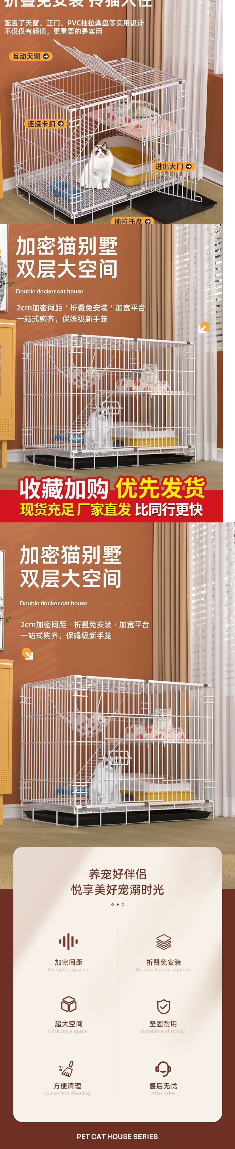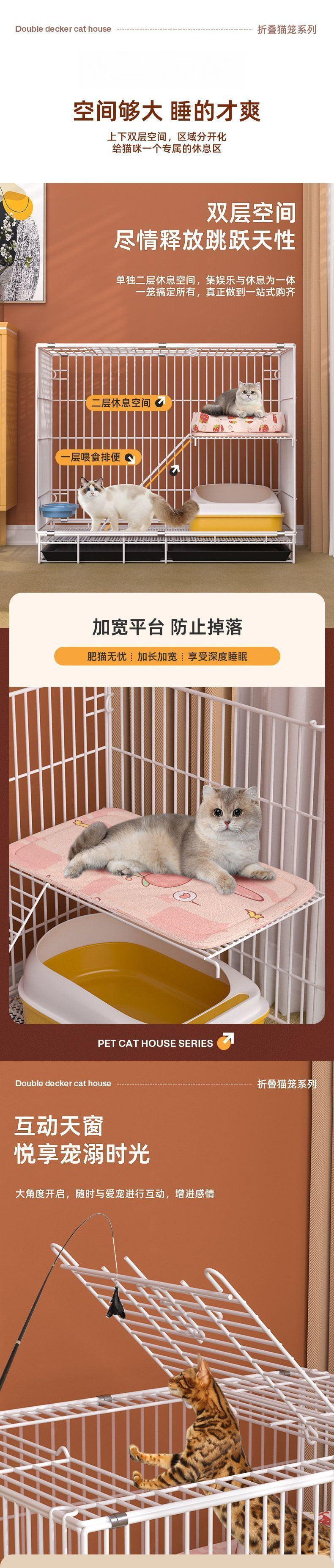 고양이 케이지 고양이 빌라 가정용 실내 슈퍼 큰 공간 고양이 집 고양이 집 접히는 작은 암호화 된 이중층 철 고양이 케이지스토어 가기
