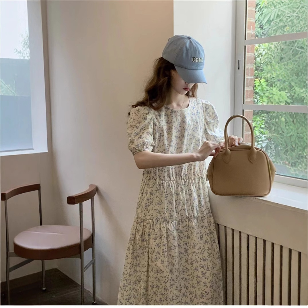 2025 년 여름 새로운 해변 휴가 우아한 꽃 원피스 Platycodon grandiflorum 차 브레이크 프랑스 롱 원피스 여성 여름 원피스