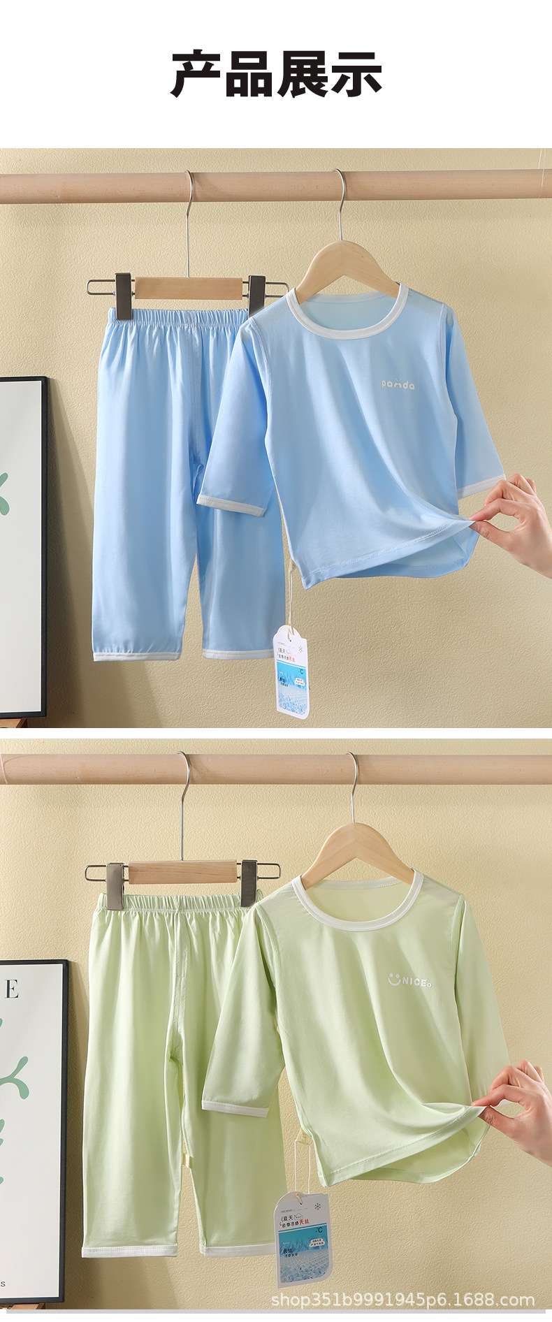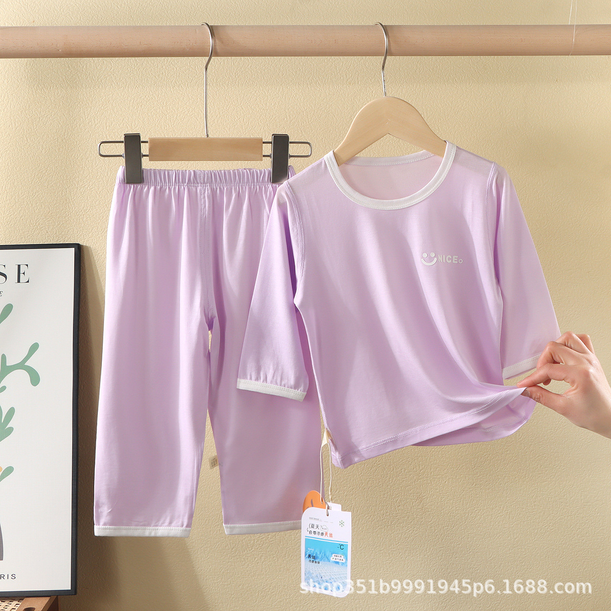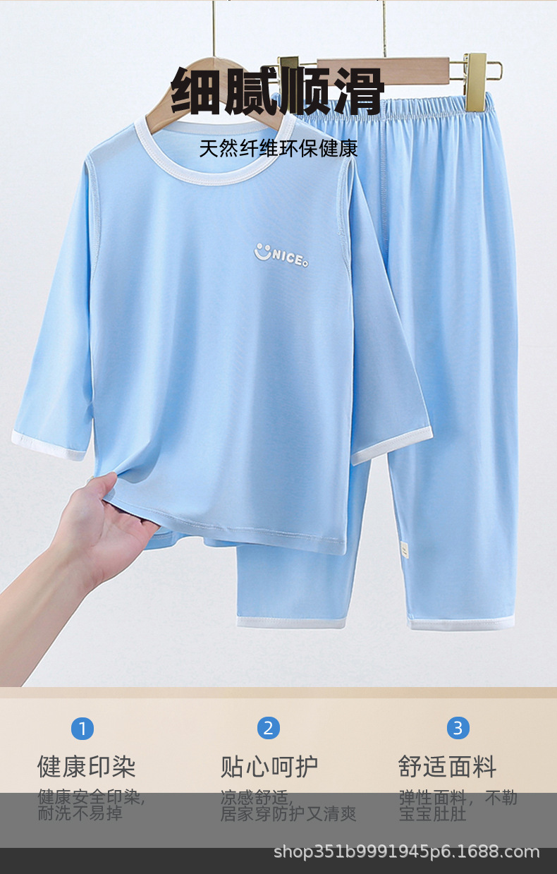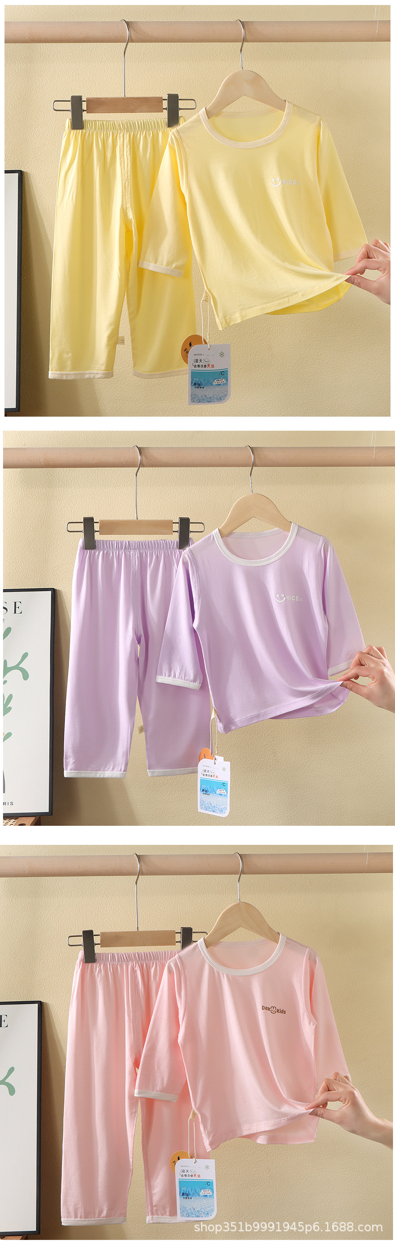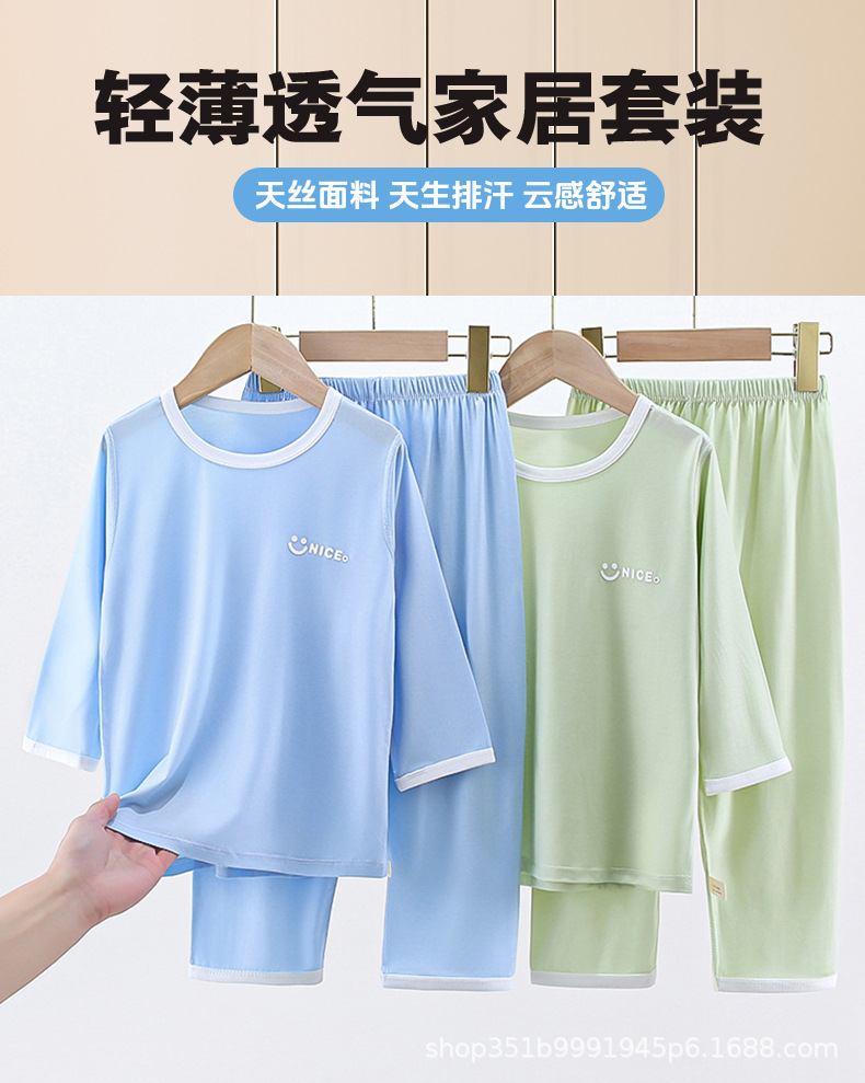 어린이 잠옷 텐셀 모달 땀-위킹 홈 의류 여름 클래스 9 점 소매 얇은 잠옷 잠옷 한국식 세트