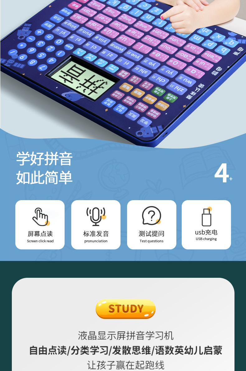 1 학년 유치원 중국 병음 학습 기계 디스플레이 화면 읽기 및 쓰기 교육 초등학생 포인트 독서 기계 교육 장난감스토어 가기