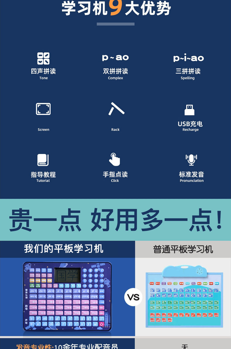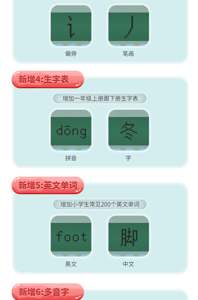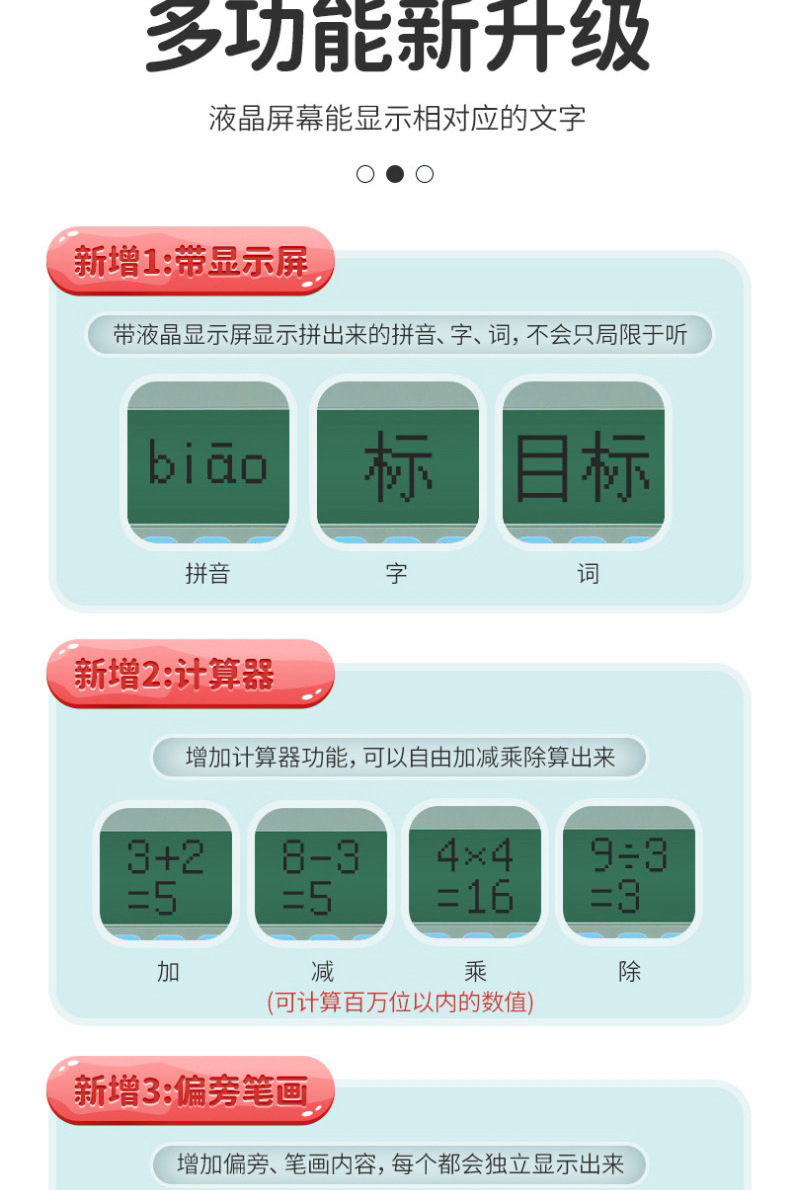 • 고급스러운 다기능 디스플레이 학습기 + 병음 테이블 + 카드