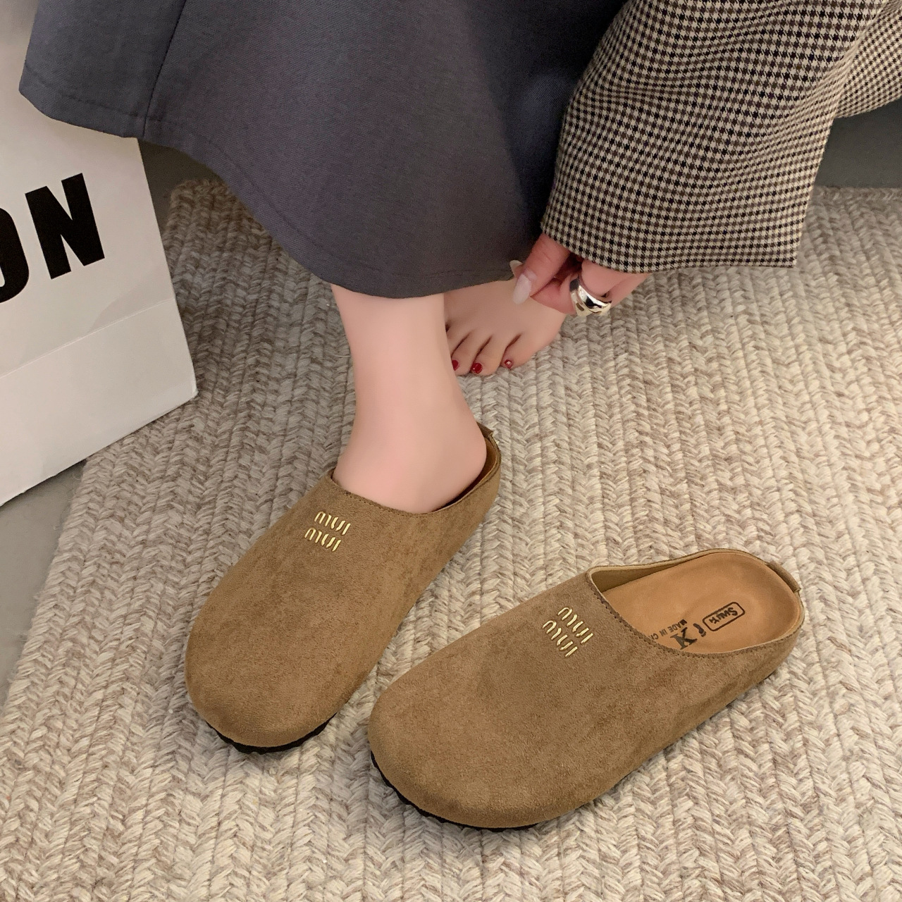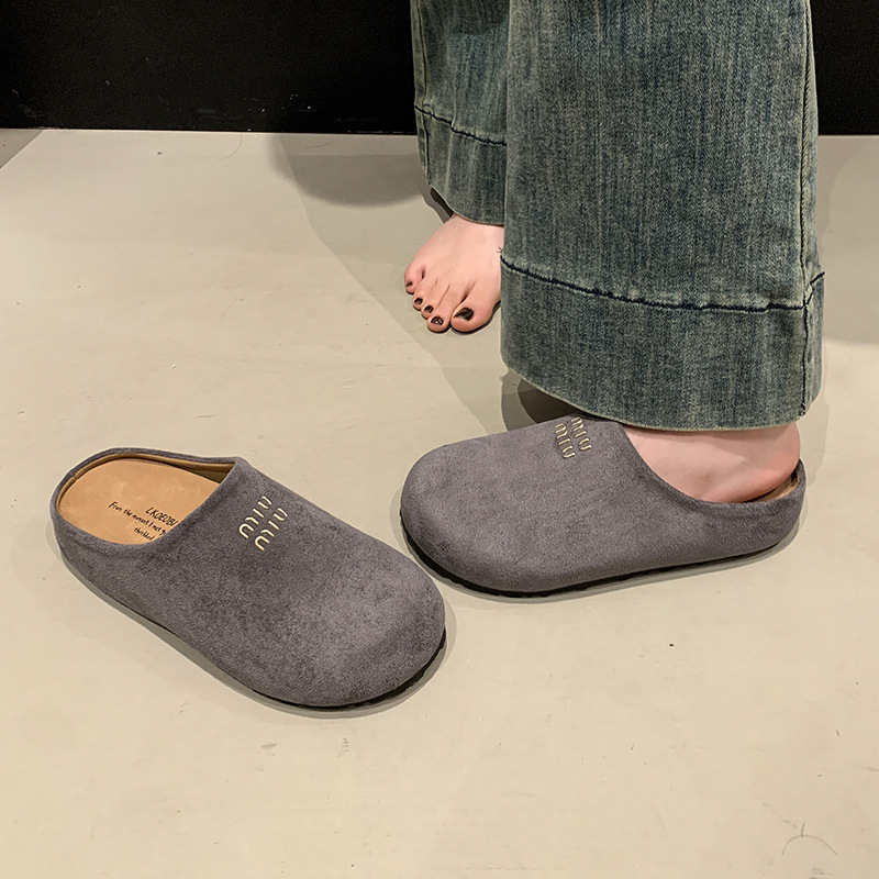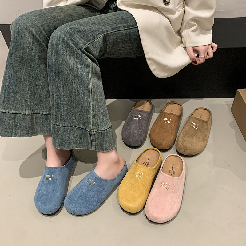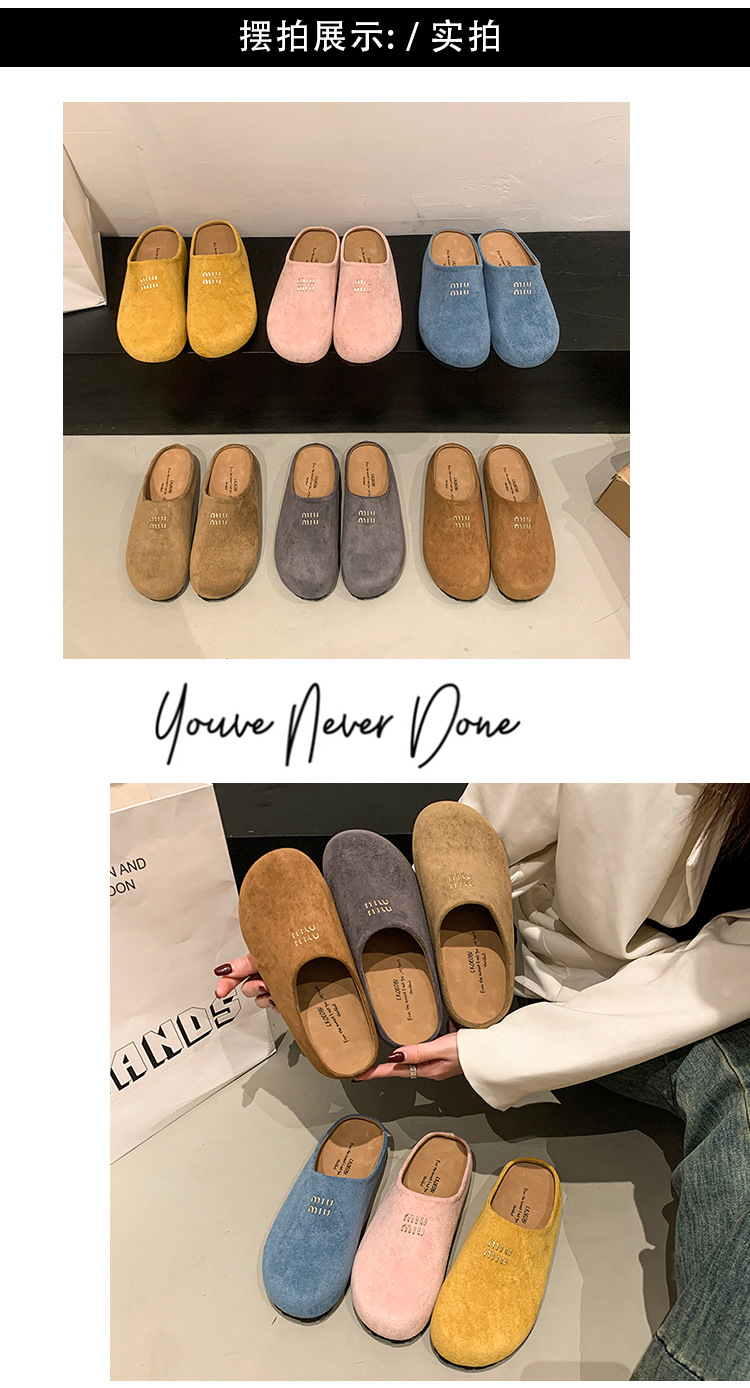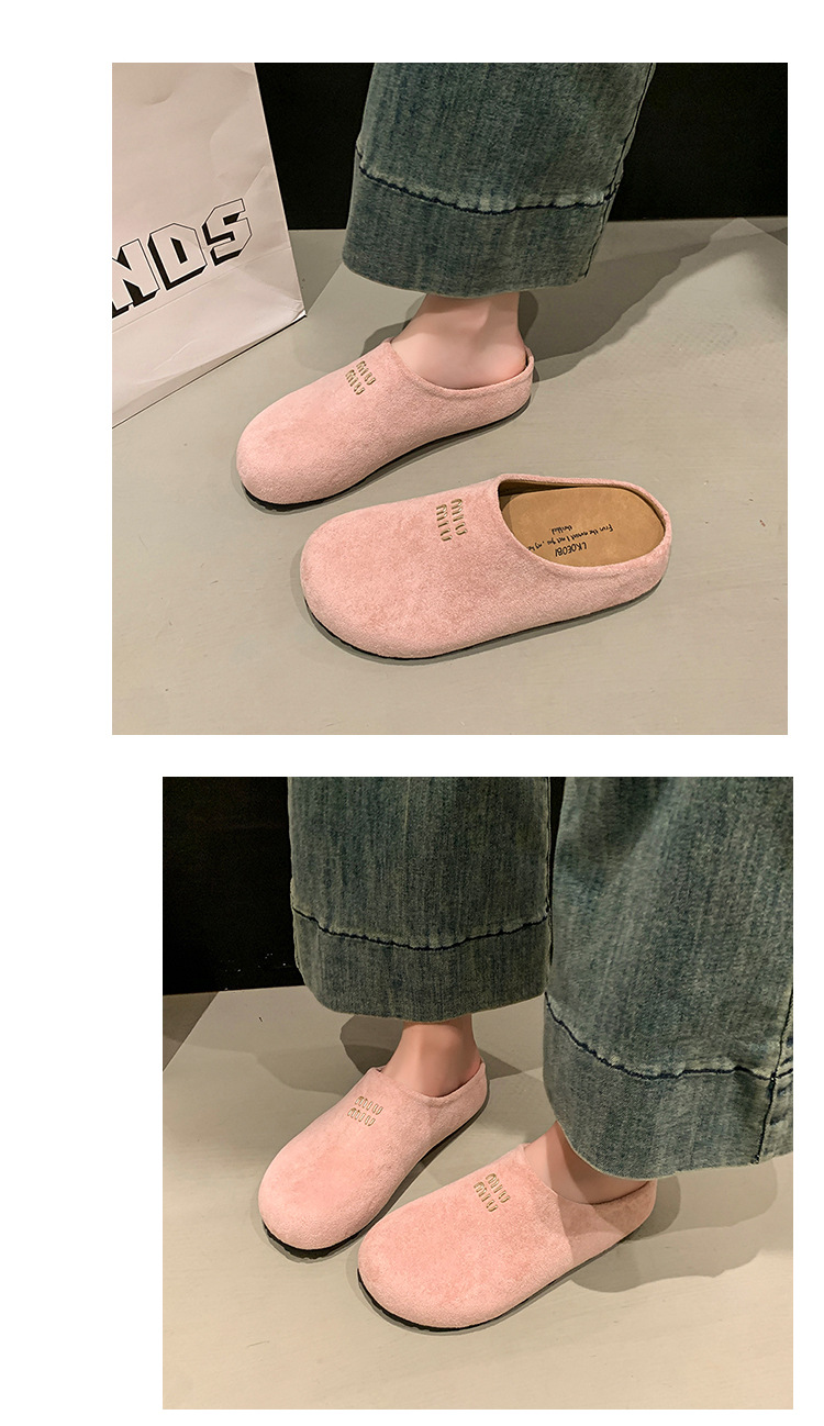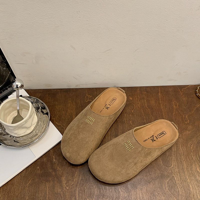 Baotou Bucken Half-tow 여성 높이 증가 2025 봄 새로운 레트로 부드러운 밑창 프로스트 캐주얼 슈즈 슬립 온스토어 가기
