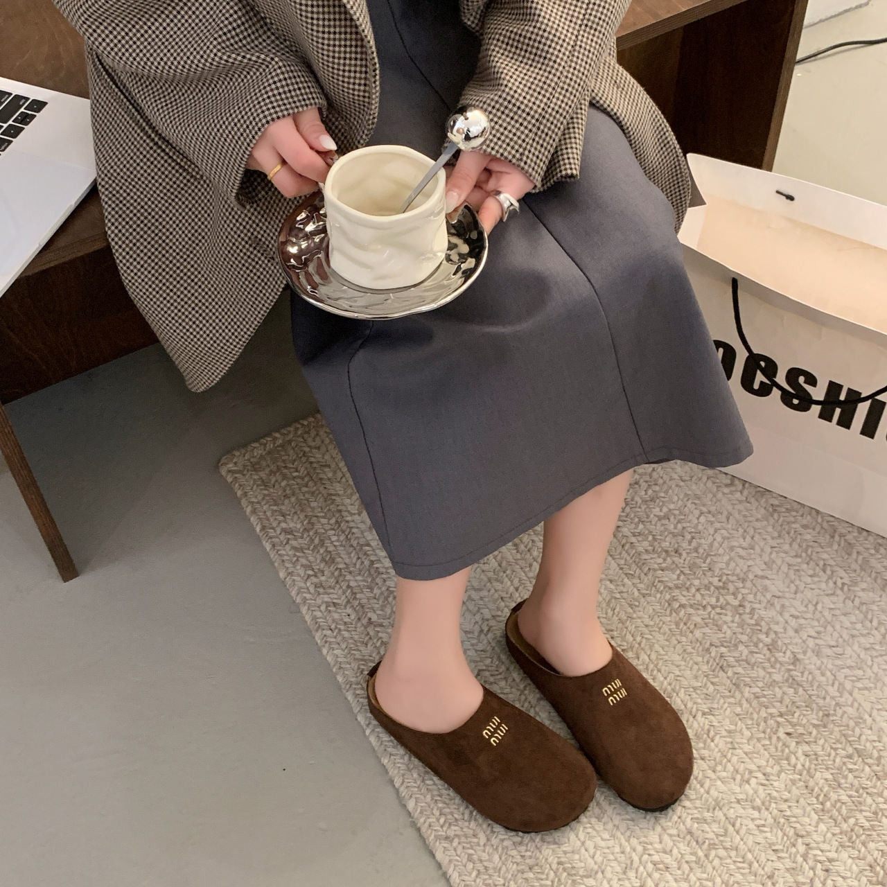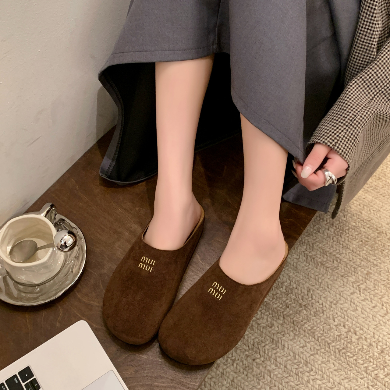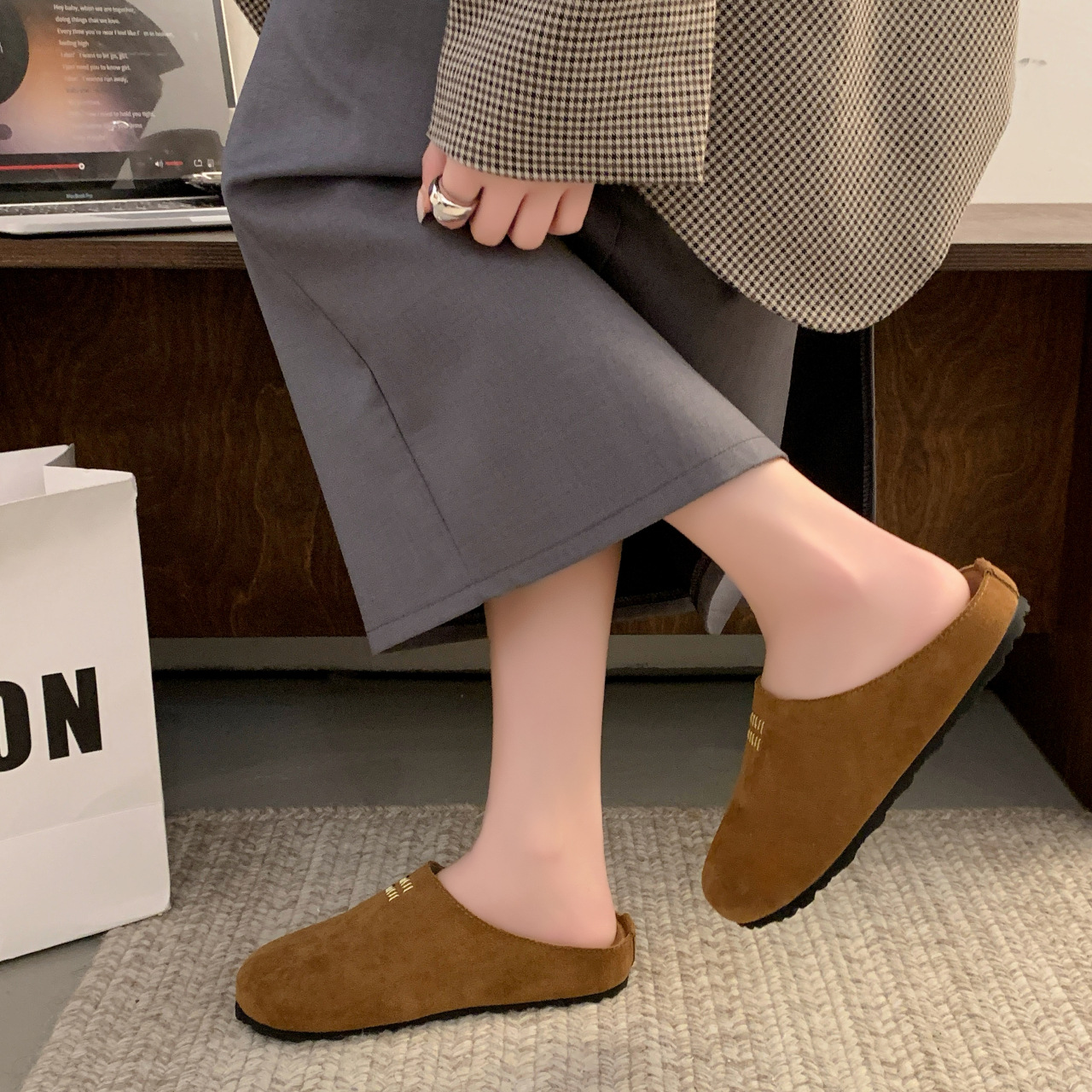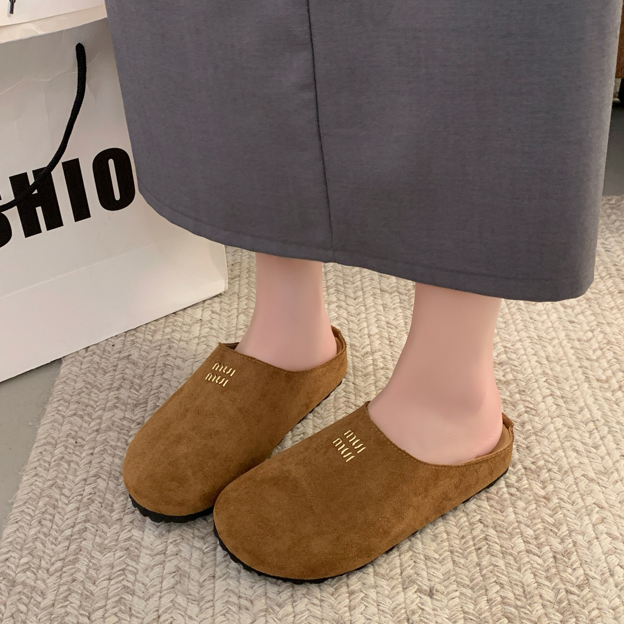 Baotou Bucken Half-tow 여성 높이 증가 2025 봄 새로운 레트로 부드러운 밑창 프로스트 캐주얼 슈즈 슬립 온스토어 가기