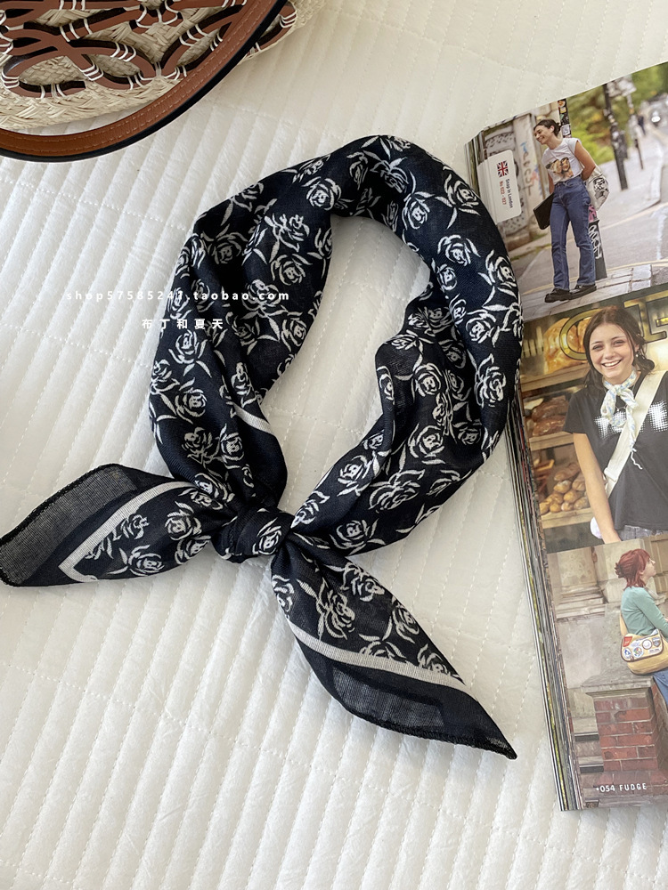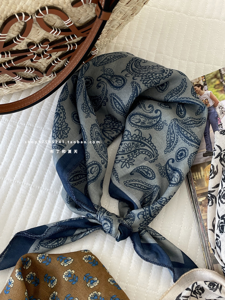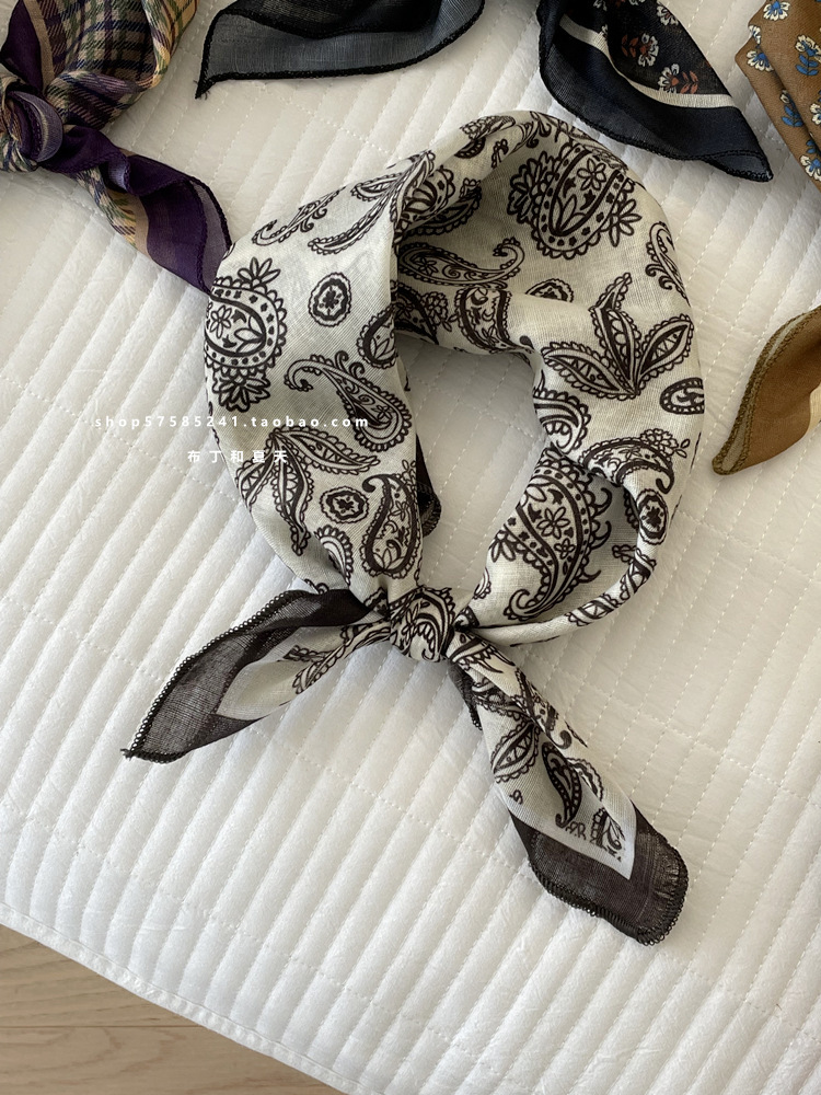 일본 스타일 라이트 빈티지 예술적 겹쳐진 모리 스타일 꽃 작은 스퀘어 스카프 통근 실크 스카프 헤드 스카프 면 리넨 스카프 한국 스타일