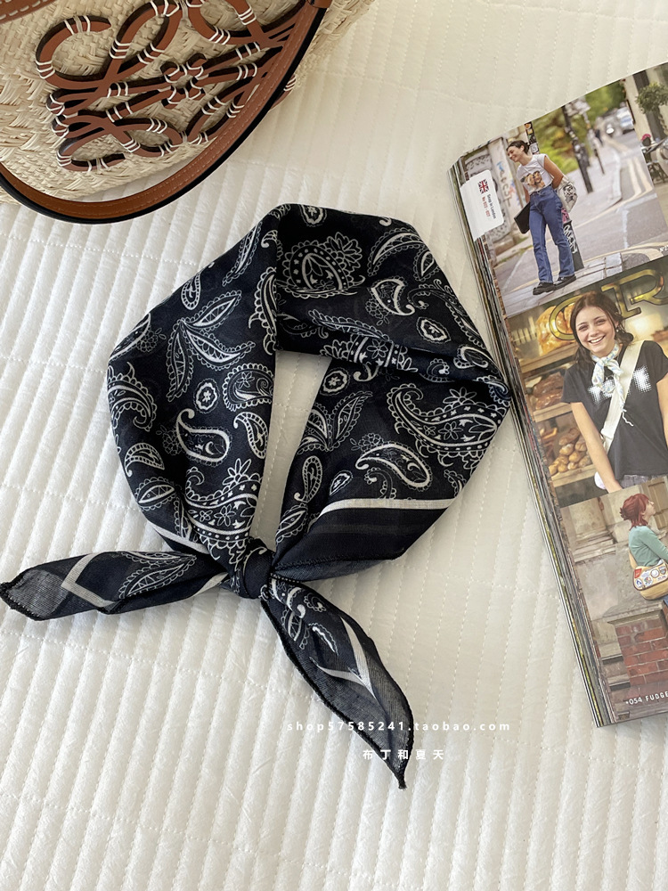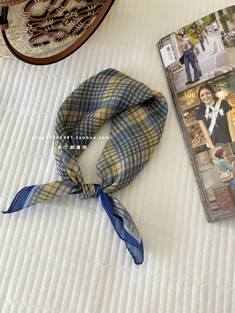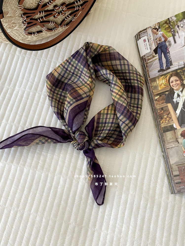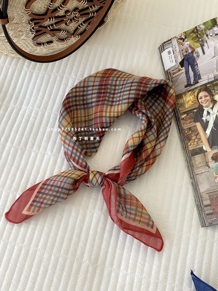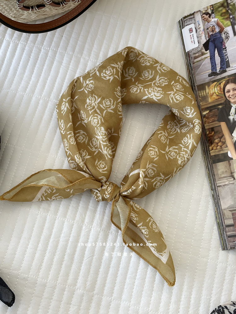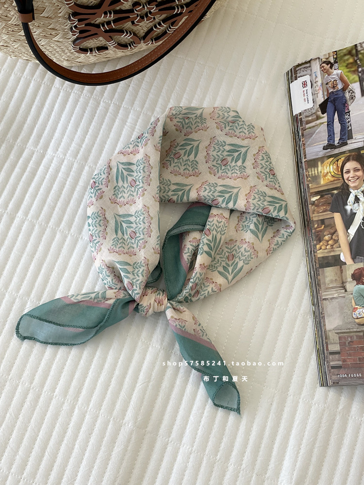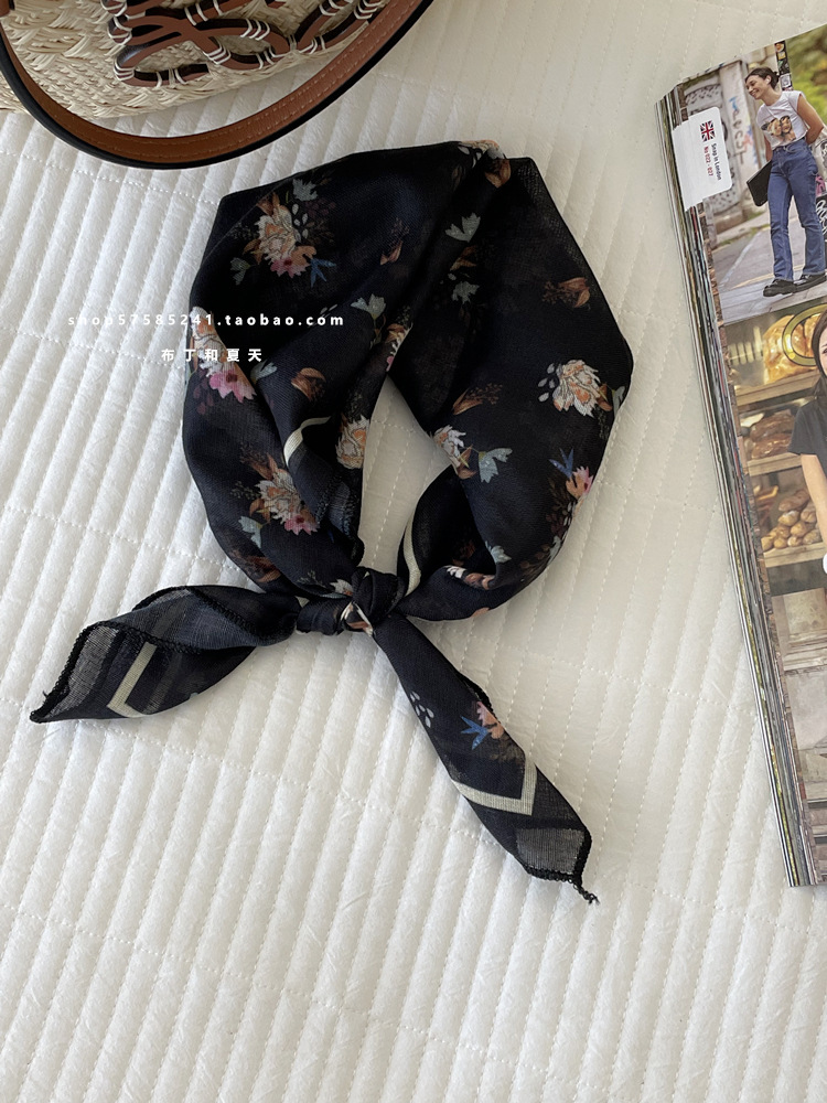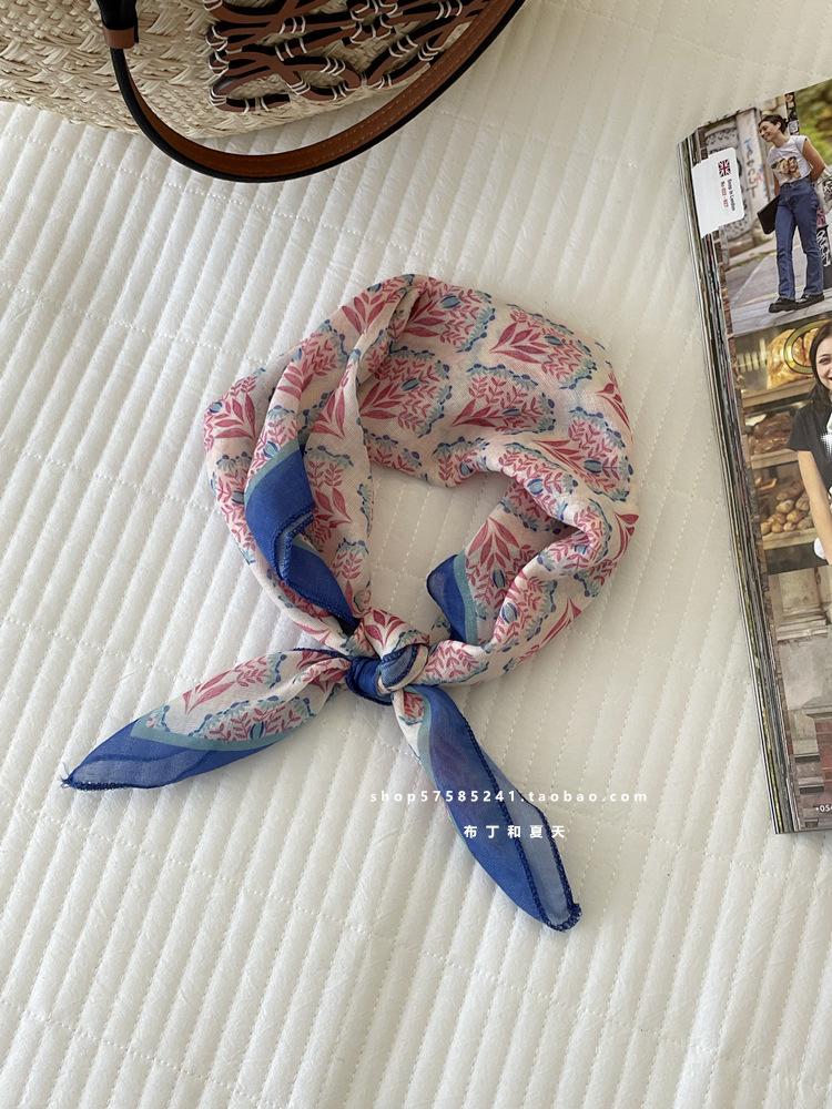 일본 스타일 라이트 빈티지 예술적 겹쳐진 모리 스타일 꽃 작은 스퀘어 스카프 통근 실크 스카프 헤드 스카프 면 리넨 스카프 한국 스타일스토어 가기