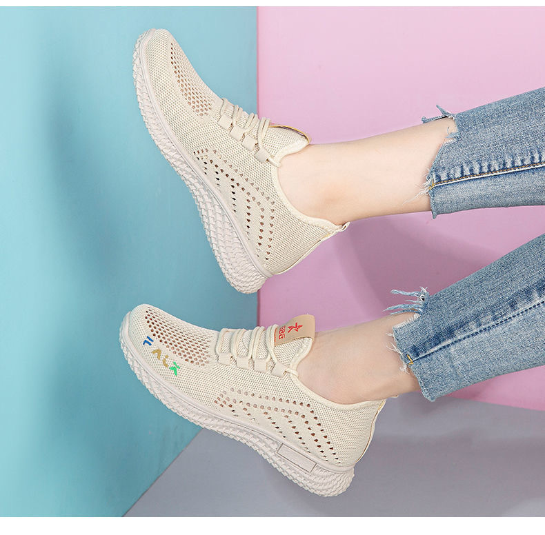 인기 스포츠 여성 플라이 메쉬 새로운 스타일 올드 베이징 중공 메쉬 신발 여성 여름 통기성 메쉬 운동화