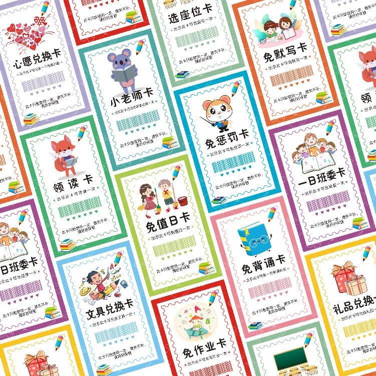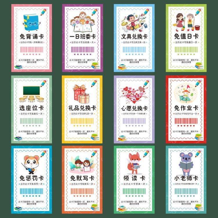 숙제 없는 교사 구속 바우처 보상 처벌 카드 초등부 어린이 포인트 카드 격려 카드 상금 도우미