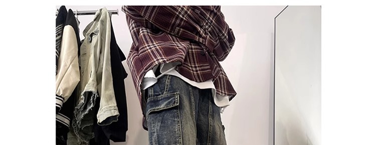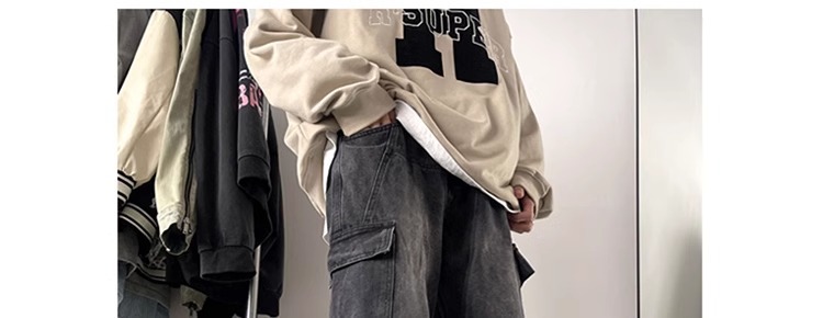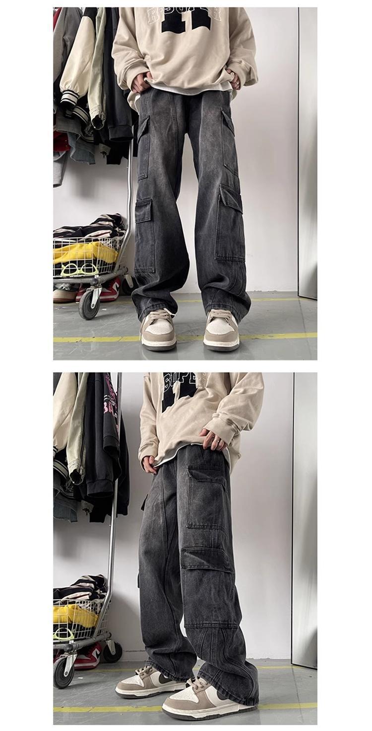 세탁 된 툴링 청바지 남성용 스트레이트 튜브 느슨한 넓은 다리 미국 스타일 하이 스트리트 팬츠 트렌디 브랜드 레트로 포켓 디자인스토어 가기