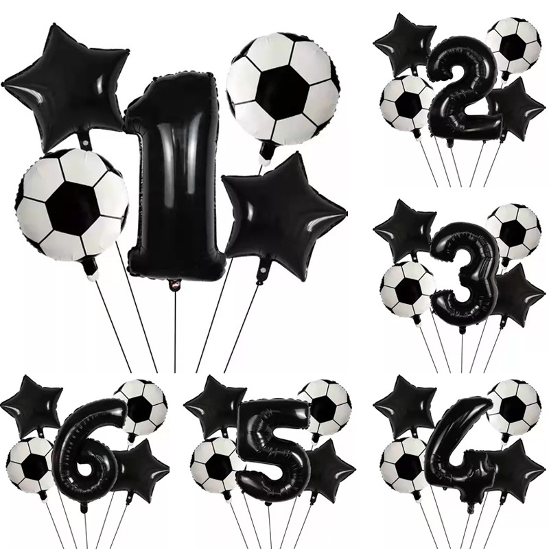 국경 32 인치 블랙 디지털 축구 시리즈 생일 파티 풍선 장식 장면 레이아웃 알루미늄 필름 풍선 세트