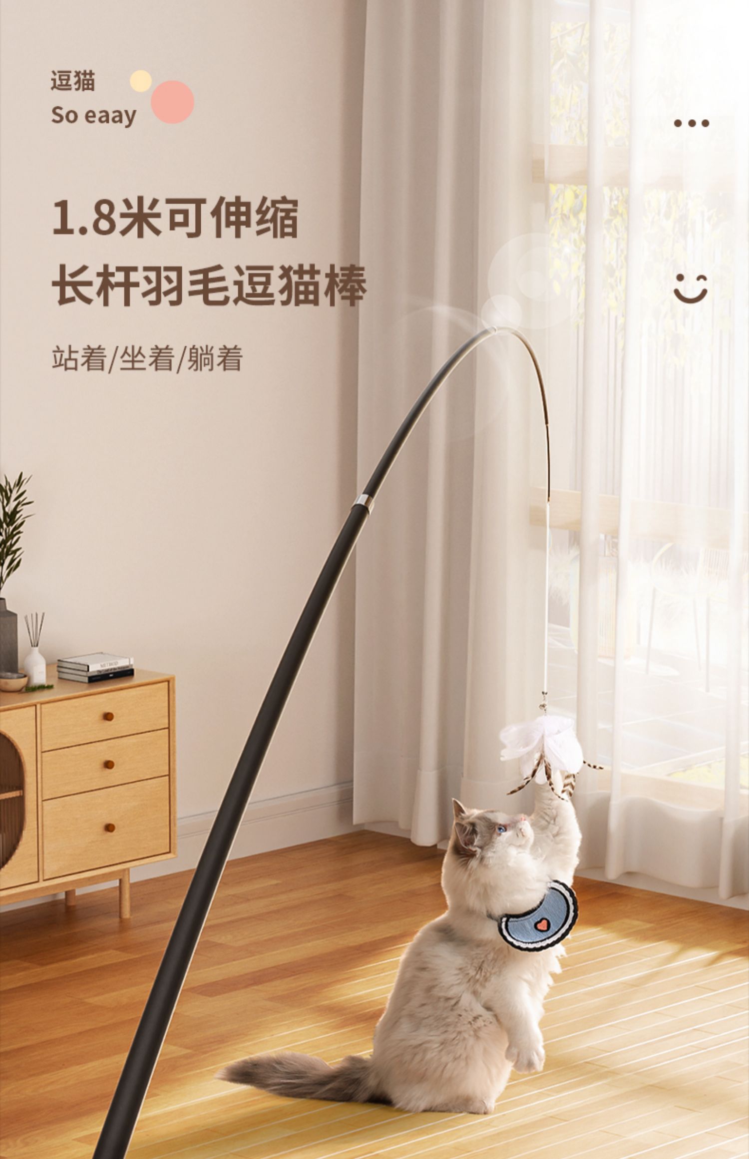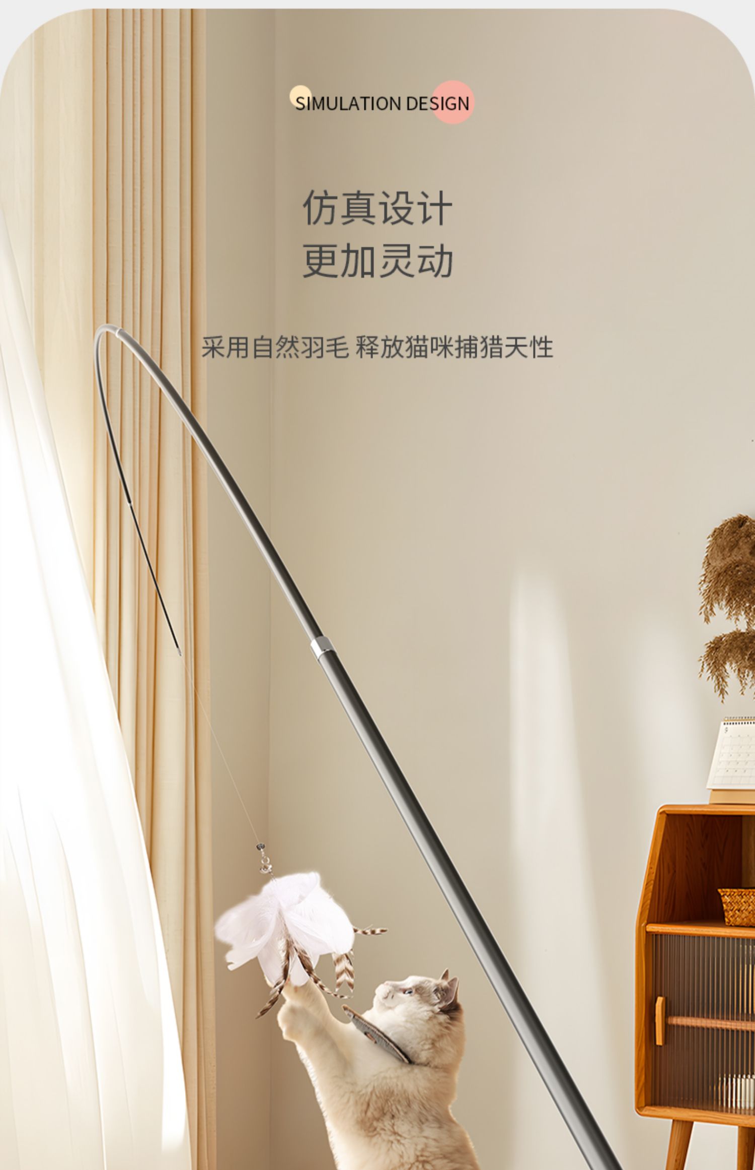 장난감 고양이 낚싯대 자체 물린 제품 긴 막대 강철 와이어 개폐식 새끼 고양이 안녕하세요 슈퍼 긴 깃털 고양이 티저 스틱스토어 가기