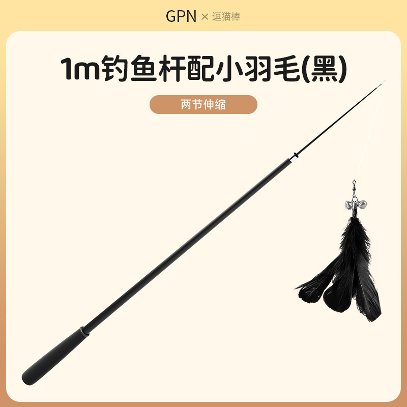 • 1m 긴 막대 개폐식 고양이 놀리는 막대 [검은색 푹신한 거위 깃털, 두 부분 개폐식]