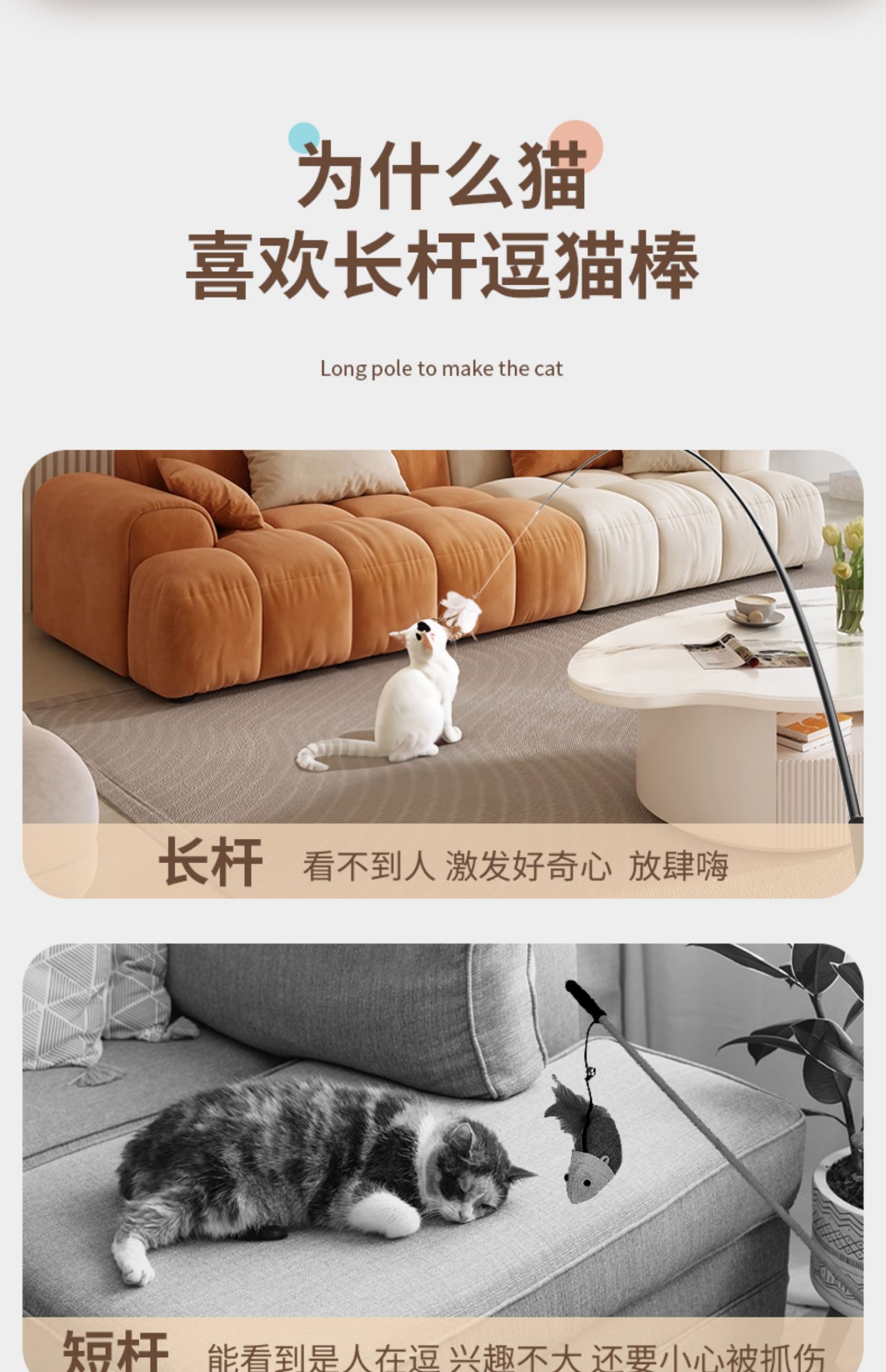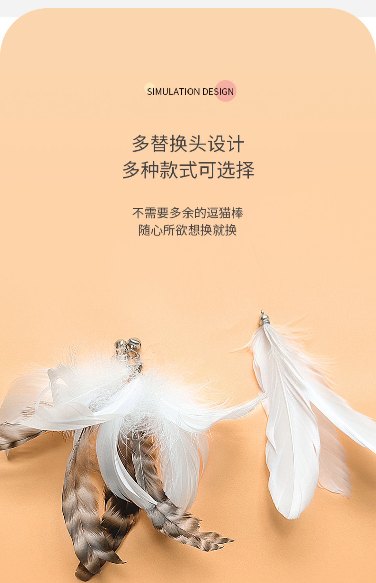 • 1.8m 긴 막대 개폐식 고양이 놀리는 막대 + 흰색 깃털 교체 헤드 4개 [총 5개]