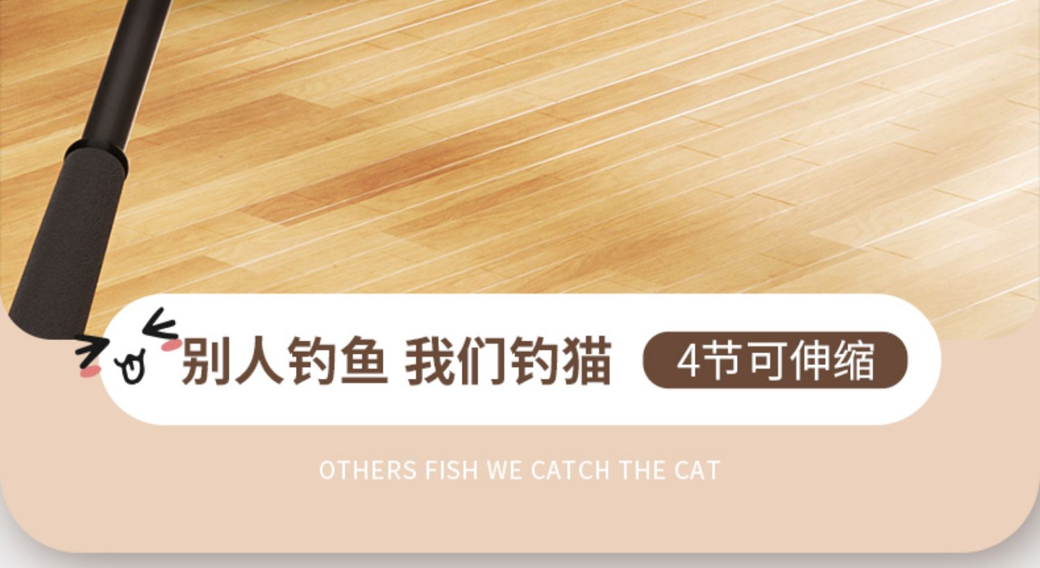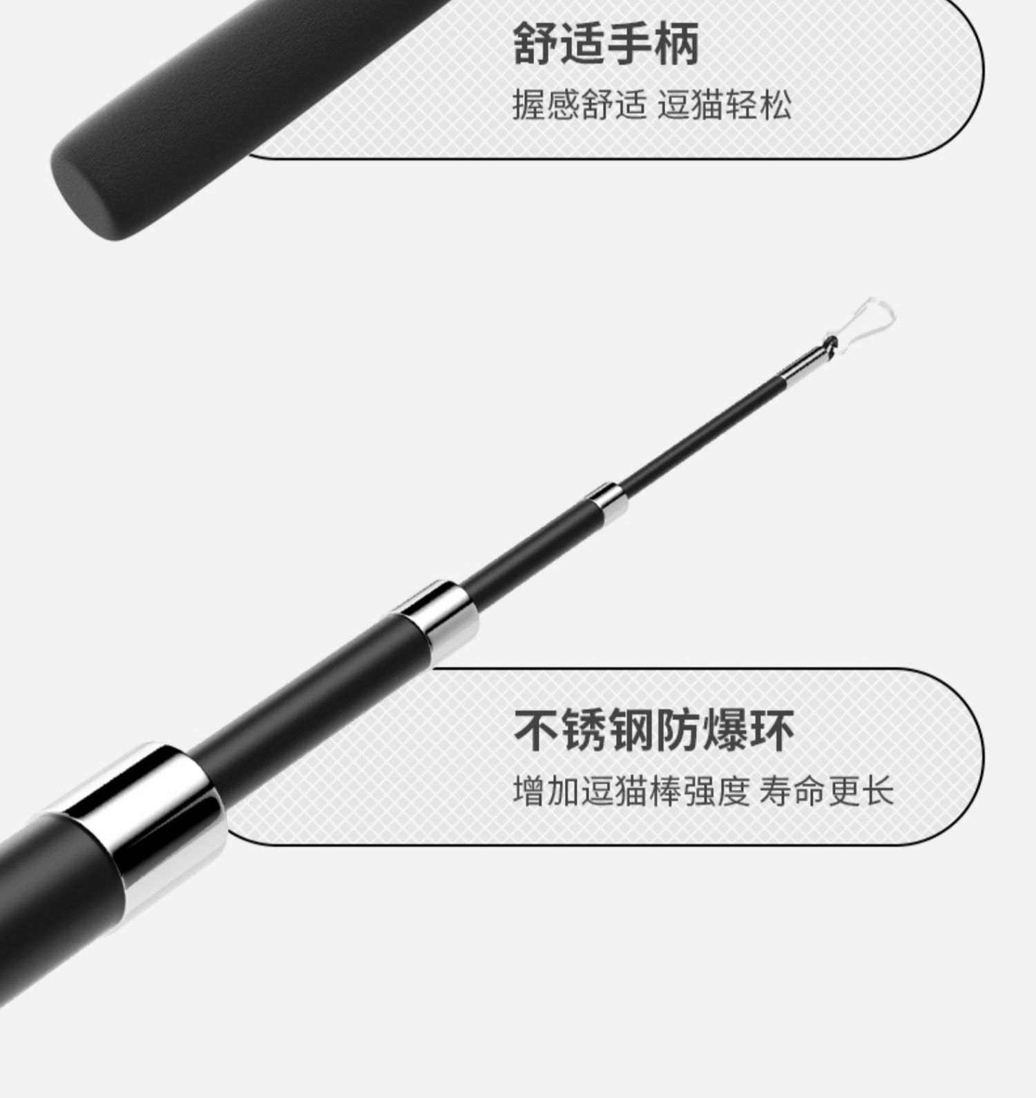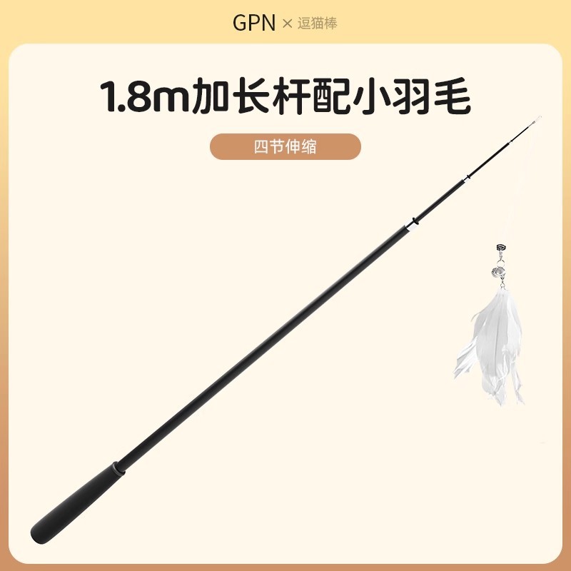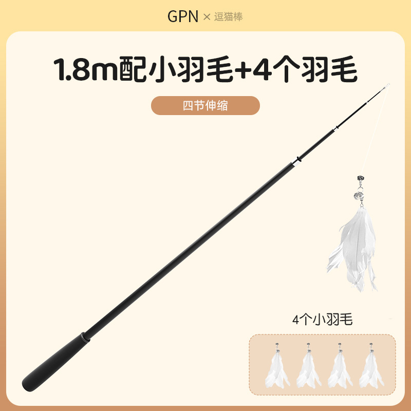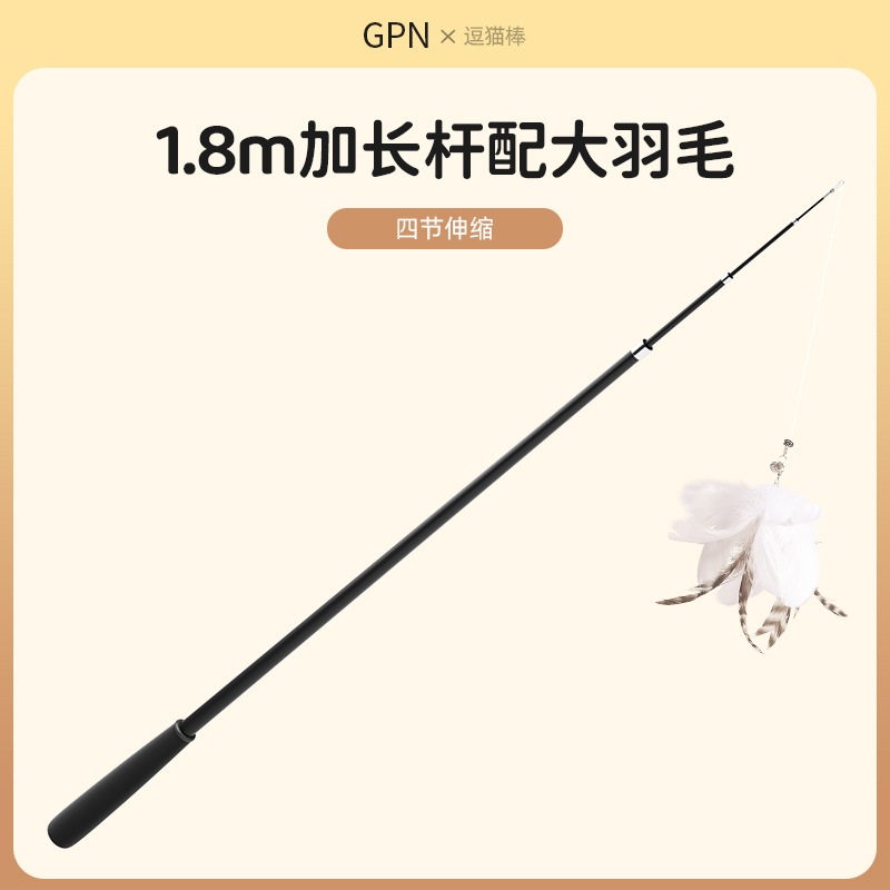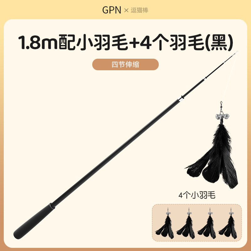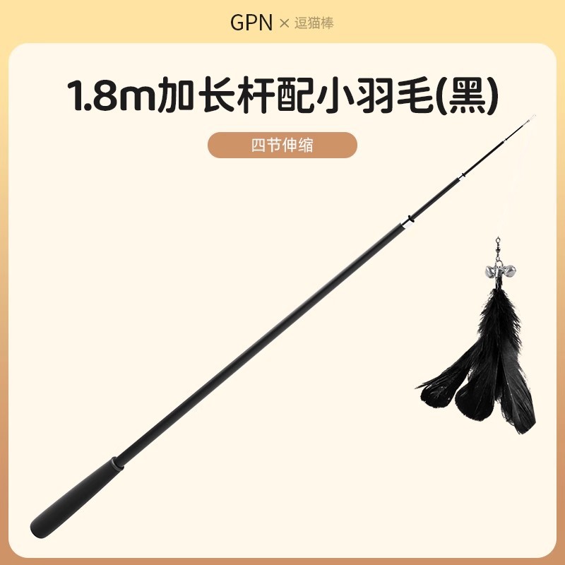 • 1.8m 긴 막대 개폐식 고양이 놀리는 막대 [검은색 푹신한 거위털, 4개 섹션 개폐식]