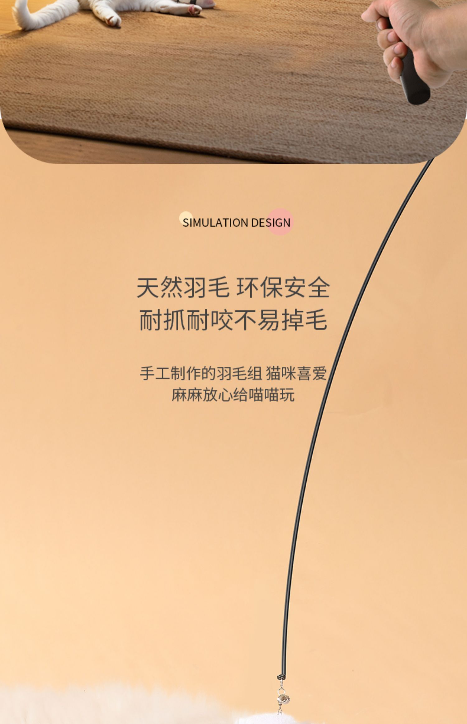 • 1m 긴 고양이 놀리는 막대--[흰색 푹신한 거위 깃털, 두 부분 개폐식]