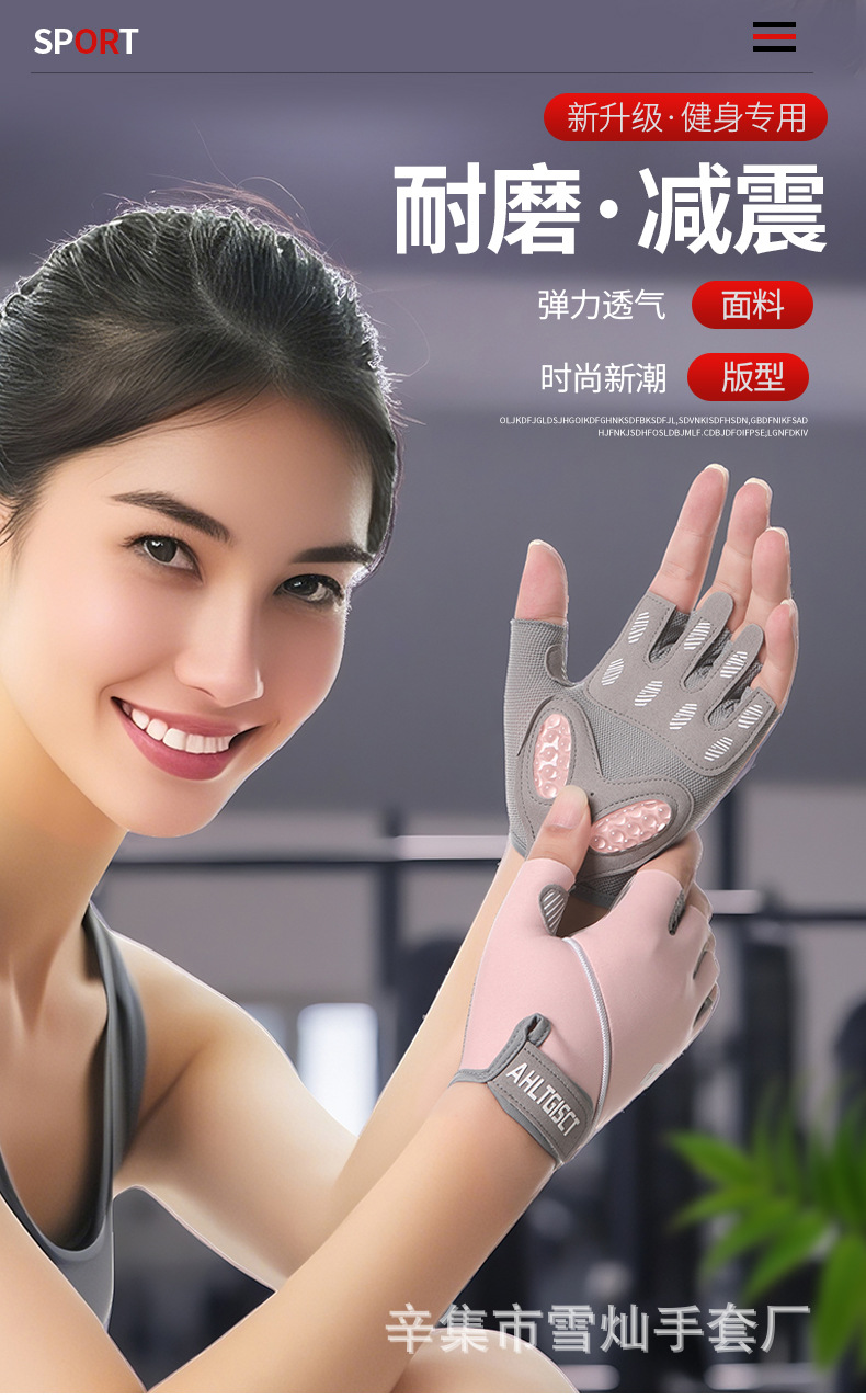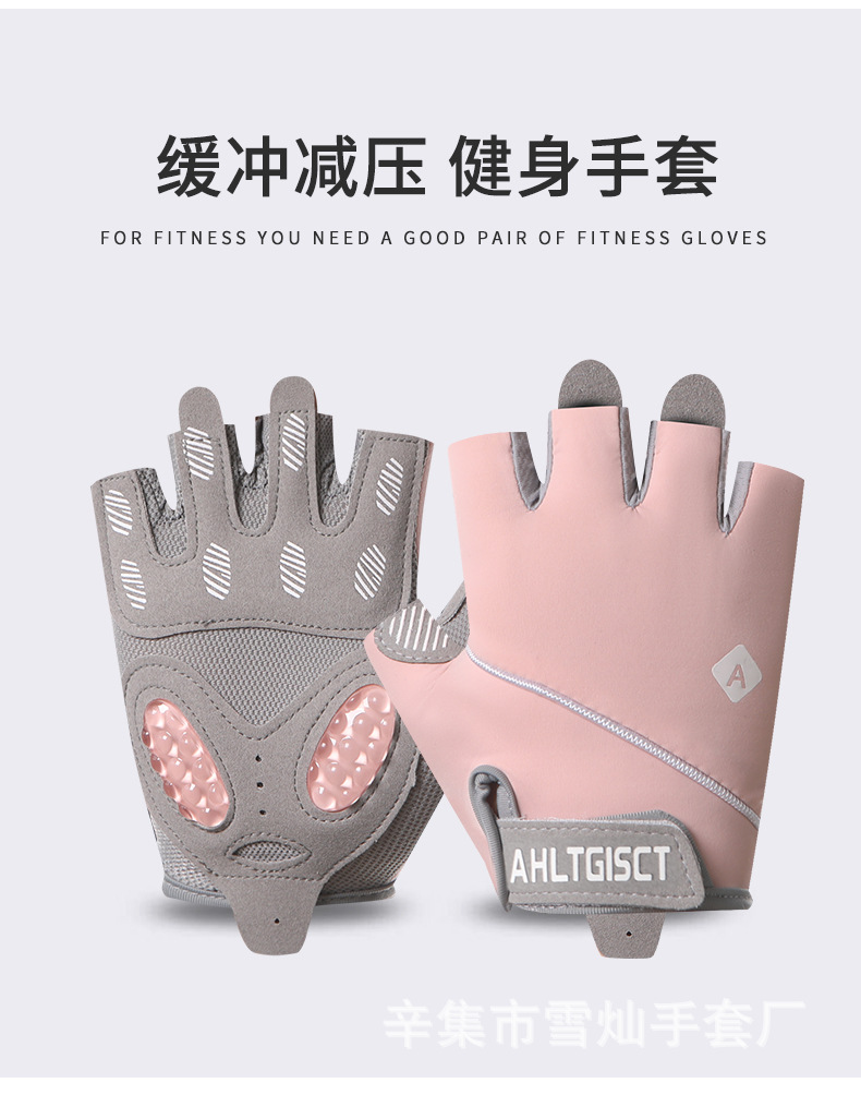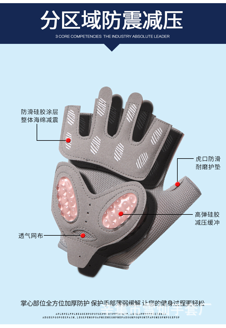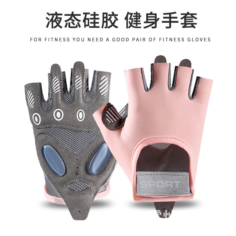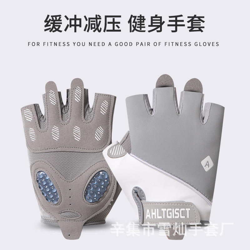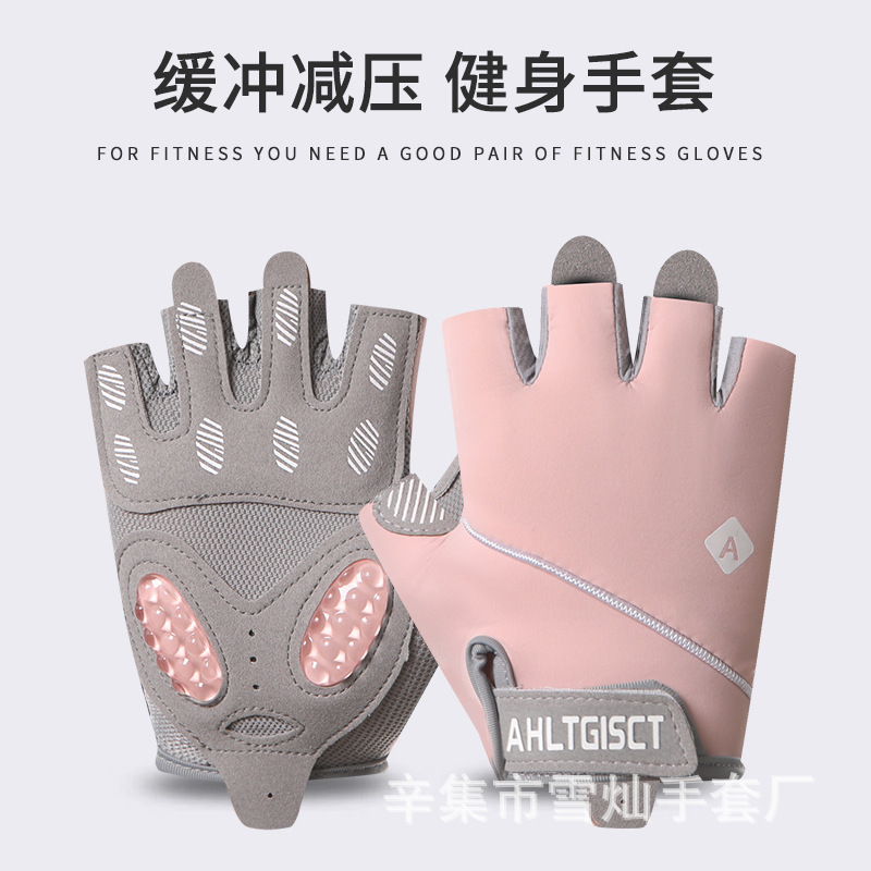 스포츠 장갑 여성의 철 요가 미끄럼 방지 에어 쿠션 충격 흡수 반 손가락 장갑 아이스 실크 통기성 내마모성 피트니스 장갑