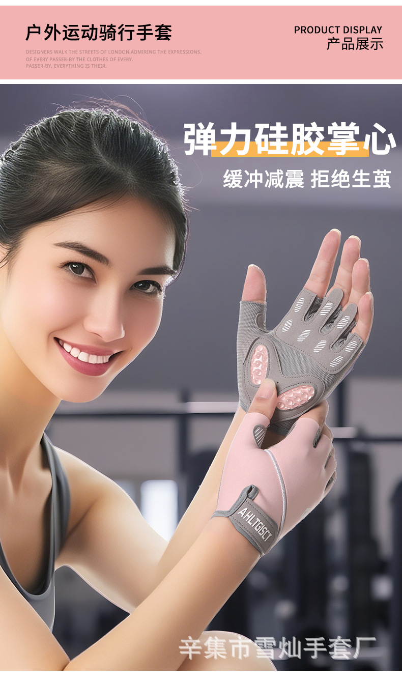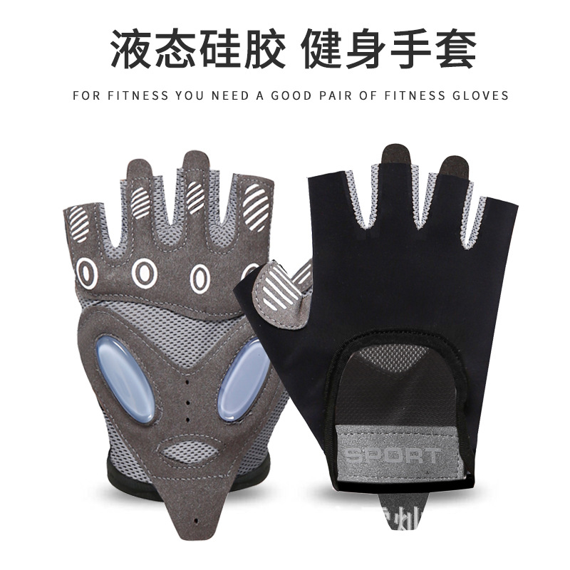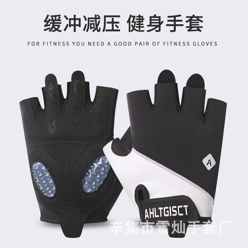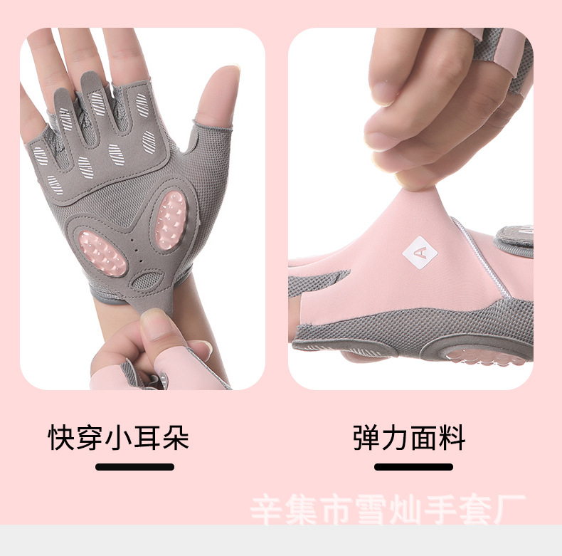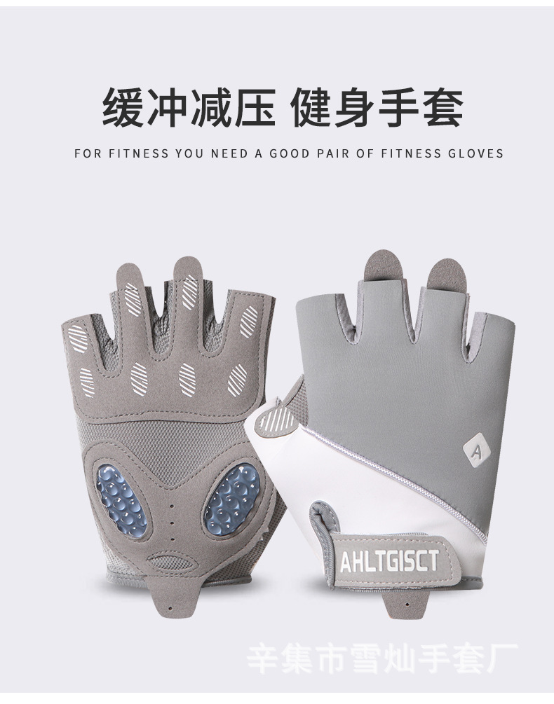 스포츠 장갑 여성의 철 요가 미끄럼 방지 에어 쿠션 충격 흡수 반 손가락 장갑 아이스 실크 통기성 내마모성 피트니스 장갑