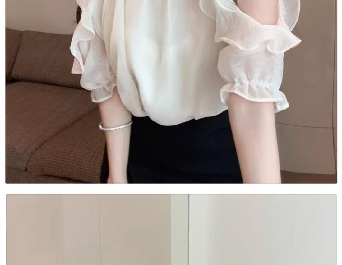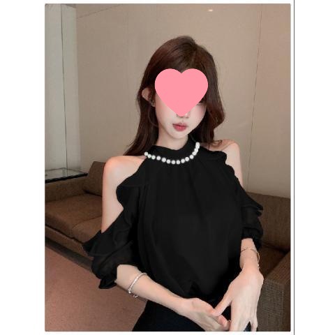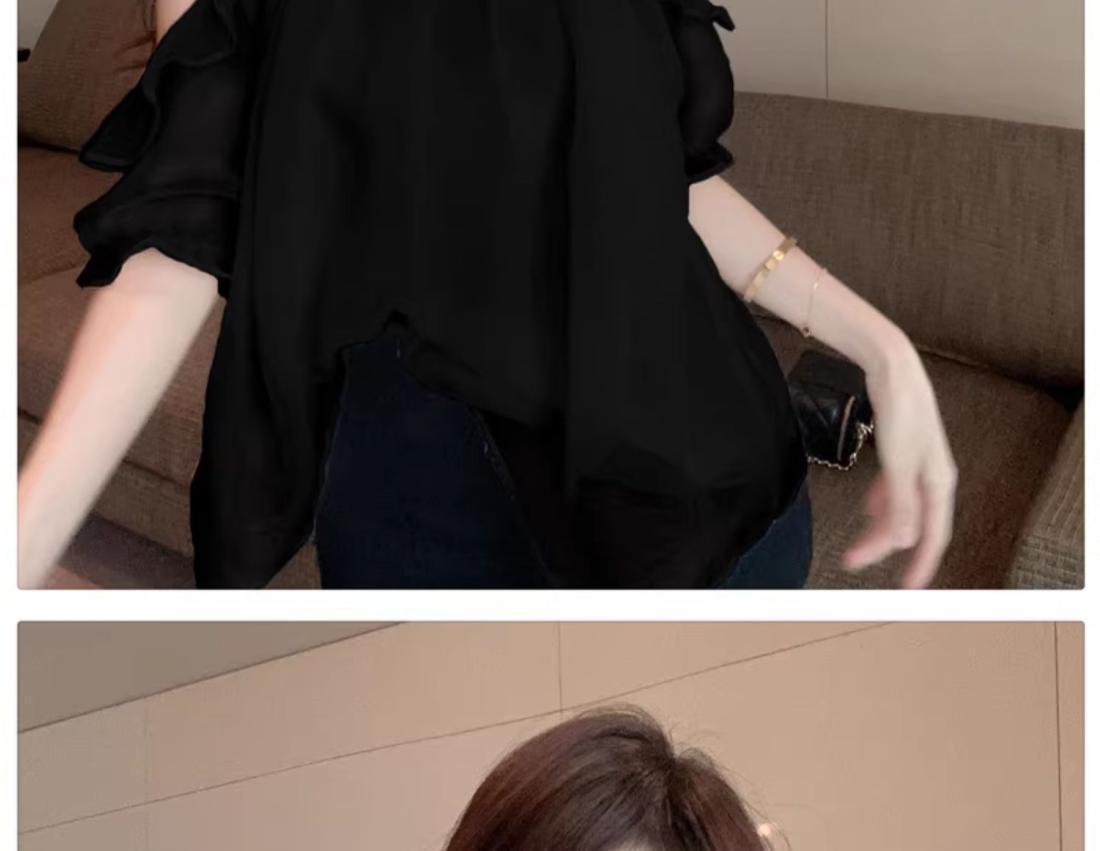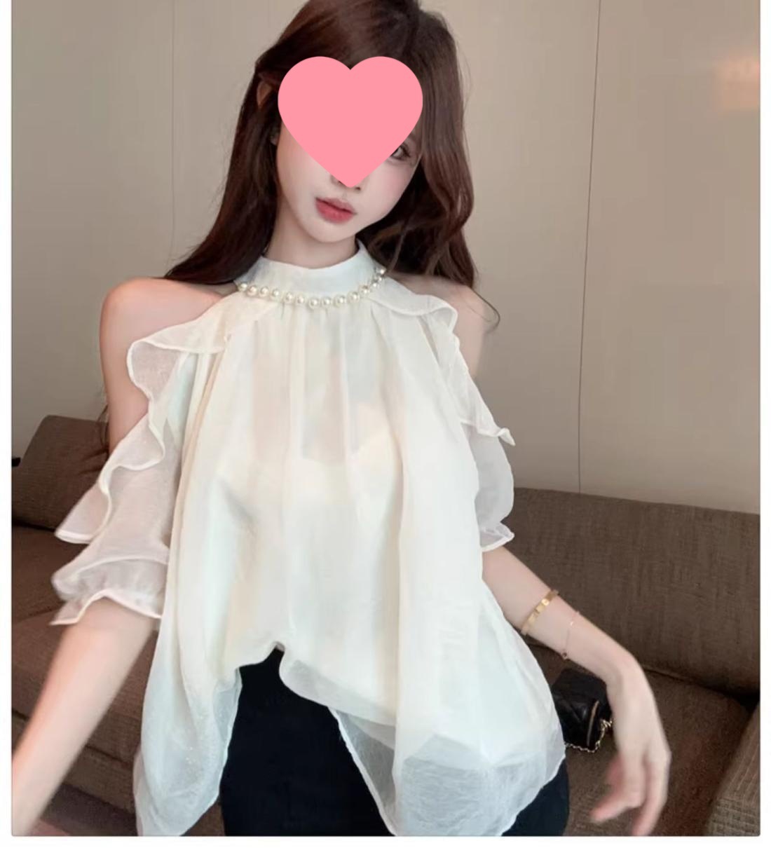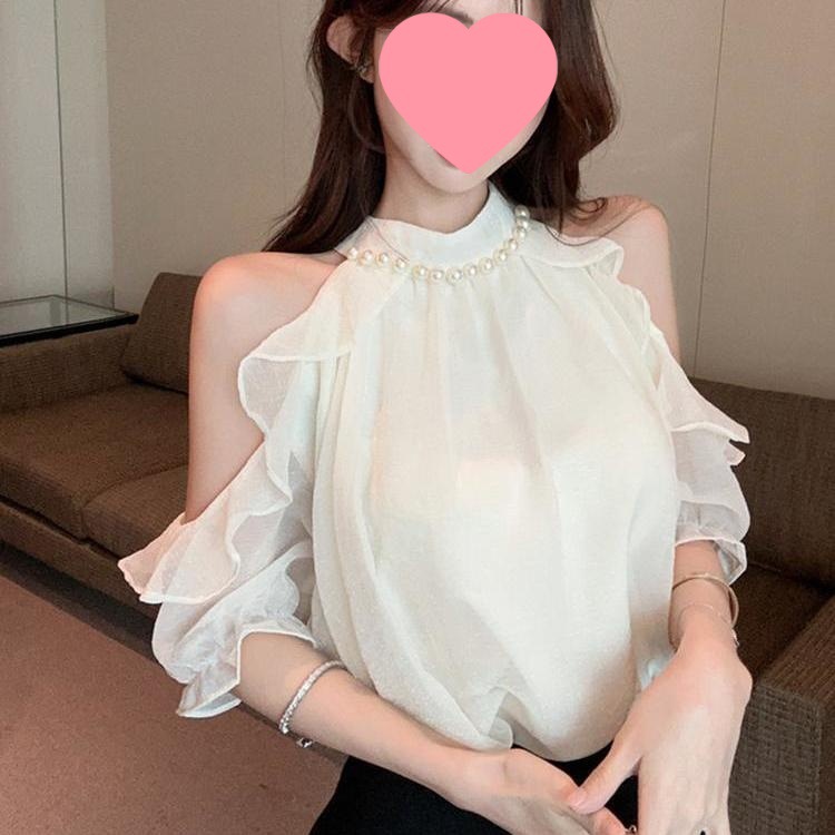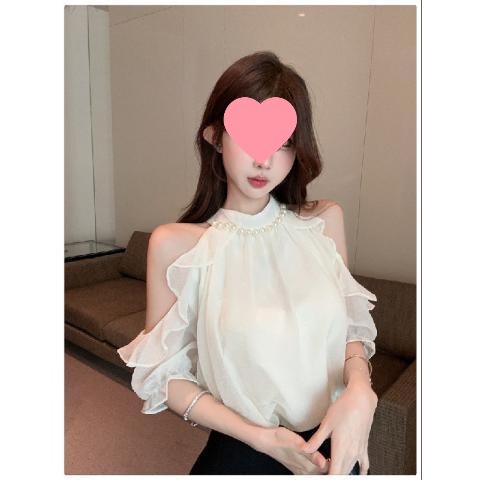 주름진 프랑스 요정 쉬폰 셔츠 여성용 여름 순수한 욕망 스파이스 어깨 목 탑 세련된 아름다운 셔츠스토어 가기