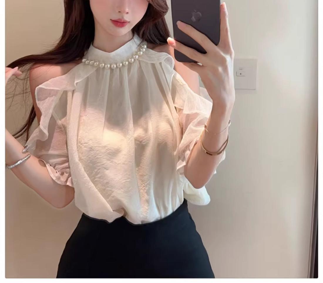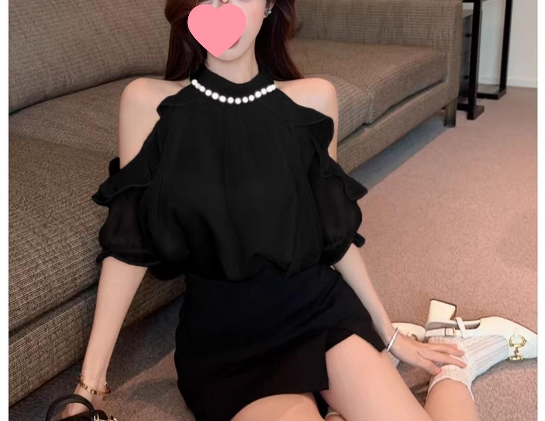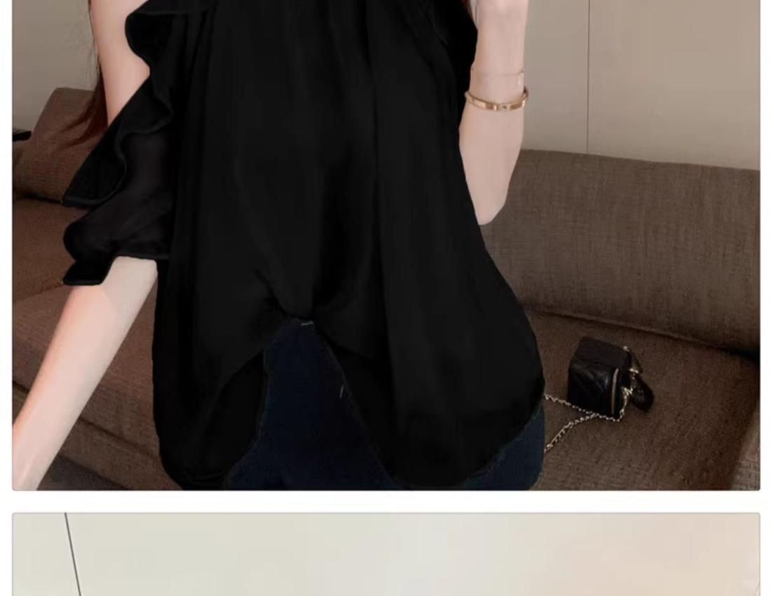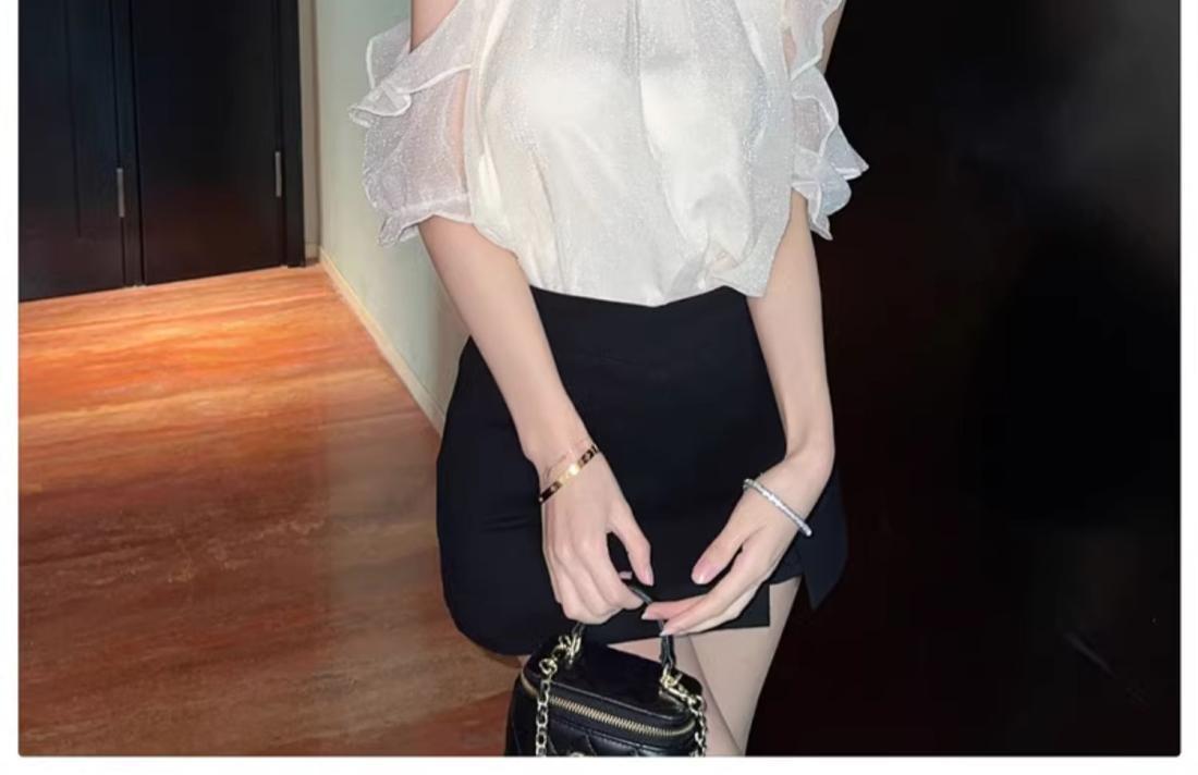 주름진 프랑스 요정 쉬폰 셔츠 여성용 여름 순수한 욕망 스파이스 어깨 목 탑 세련된 아름다운 셔츠스토어 가기