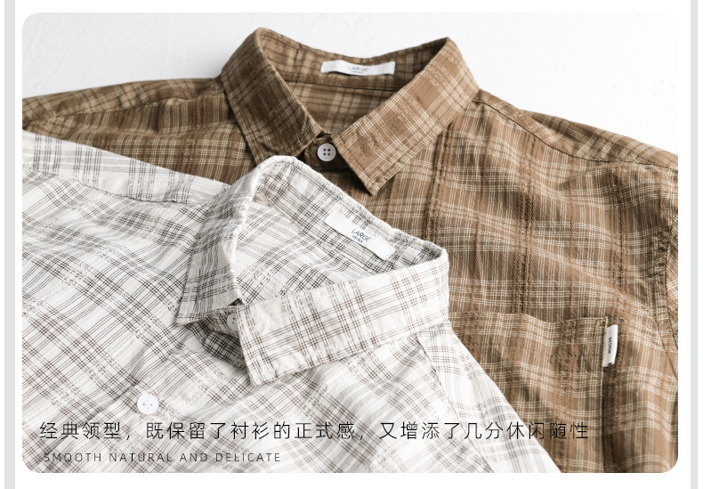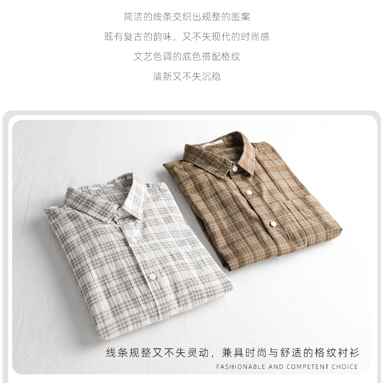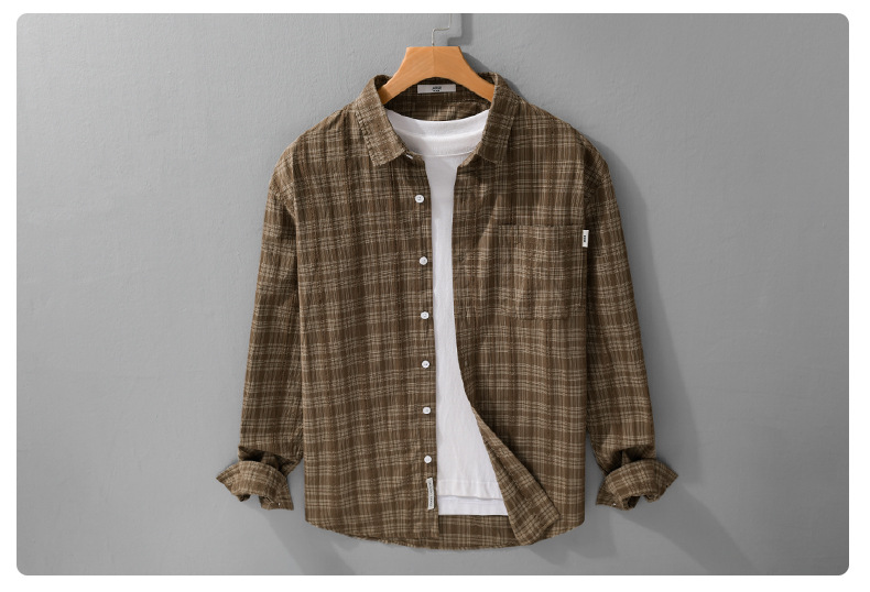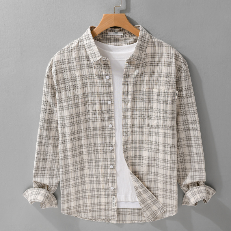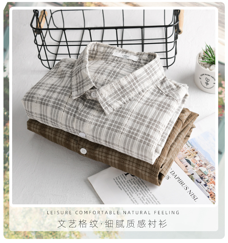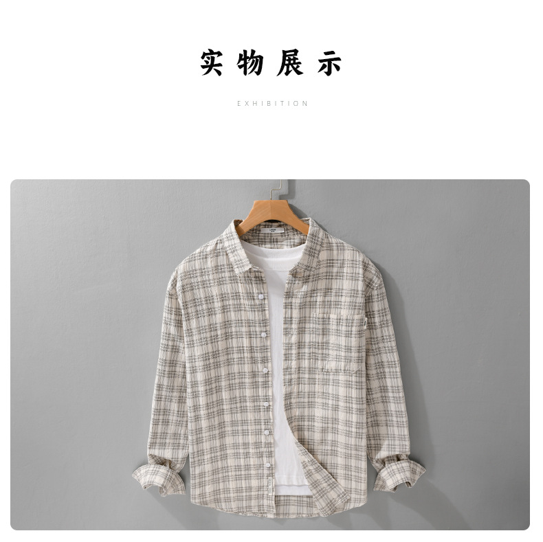 일본 남성 루즈 캐주얼 체크 무늬 남성 긴 셔츠 신선하고 다재다능한 고급 남성 탑 9931스토어 가기