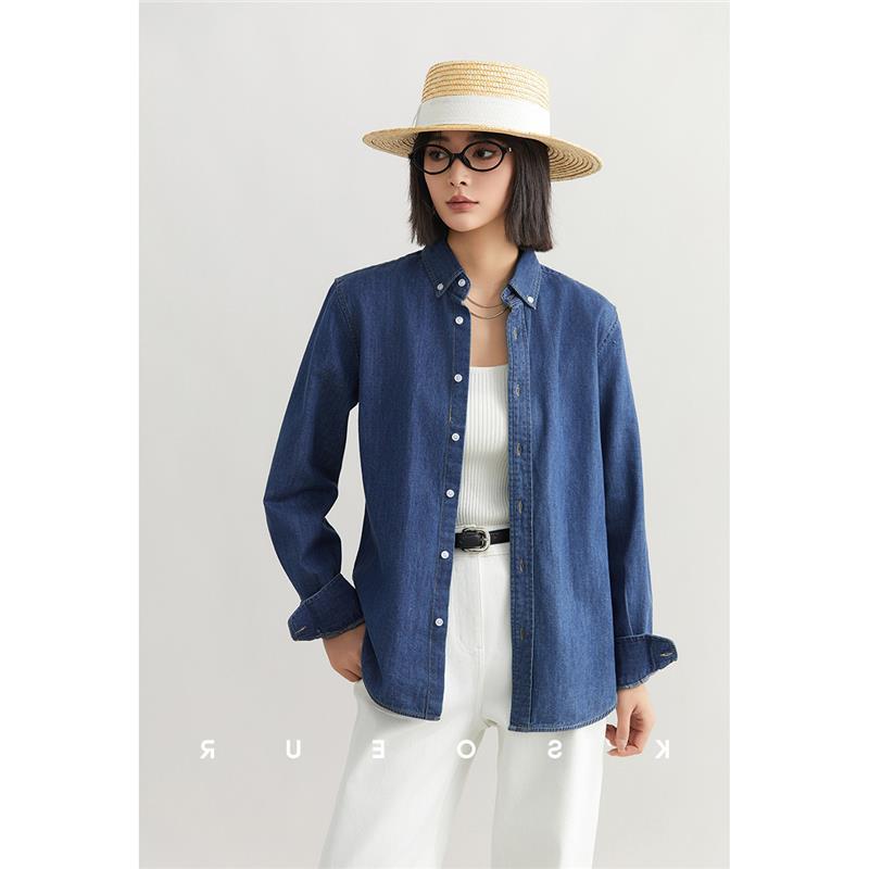 봄/여름 2025 새로운 [완진유 셔츠] 데님 쌓인 인공물 고급 통근 데님 셔츠스토어 가기