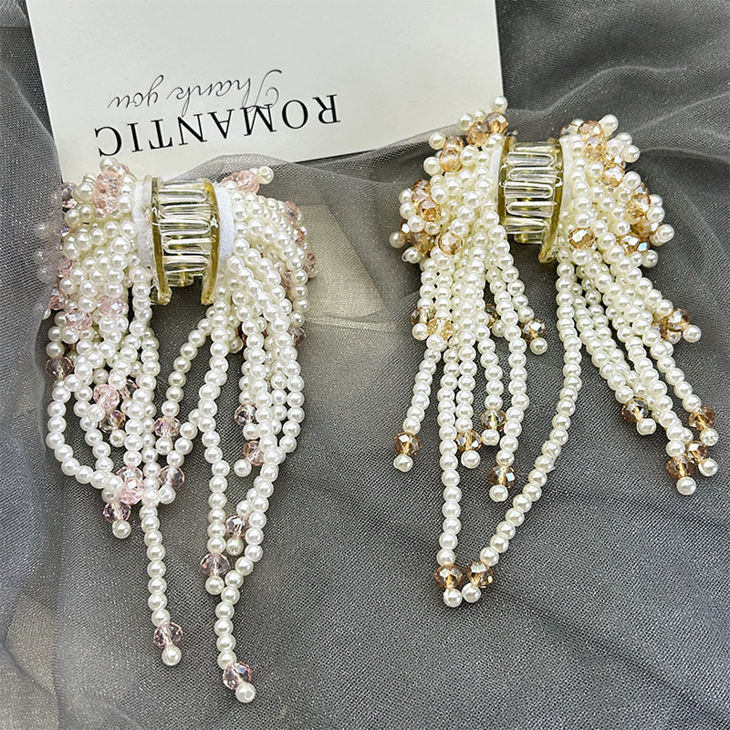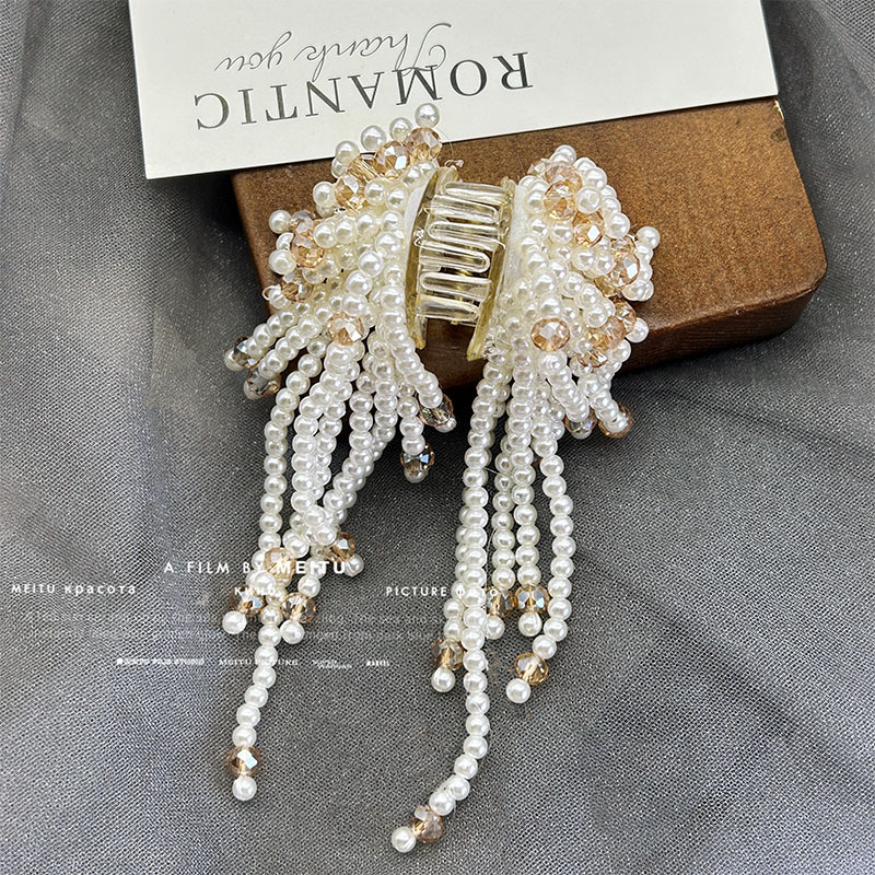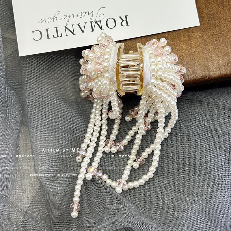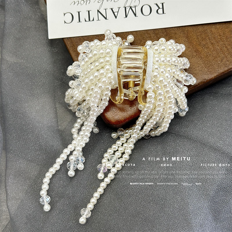 하이 엔드 진주 크리스탈 술 클립 라이트 럭셔리 헤어 잡아 반 포니 테일 헤어핀 클립 클립 헤드웨어 헤어 액세서리 여성