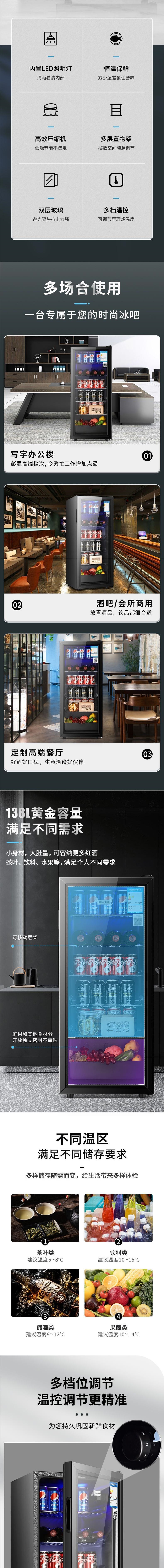 ELKS 아이스 바 가정용 디스플레이 캐비닛 작은 냉장 신선한 보관 캐비닛 수직 투명한 냉장고 유리 도어 차 와인 캐비닛