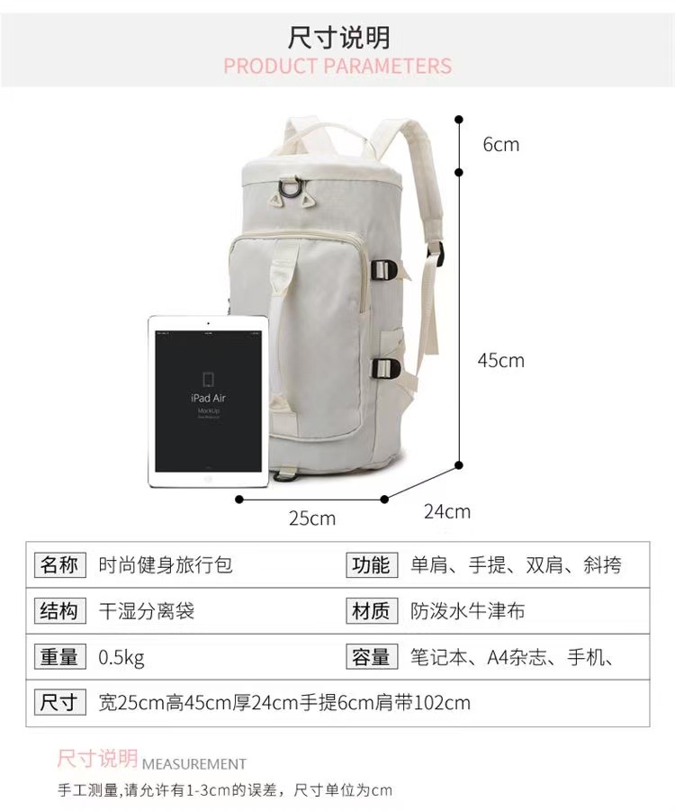 다기능 여행 가방 대용량 단거리 여행 가방 어깨 고등학생 스포츠 피트니스 가방 출장 탑승
