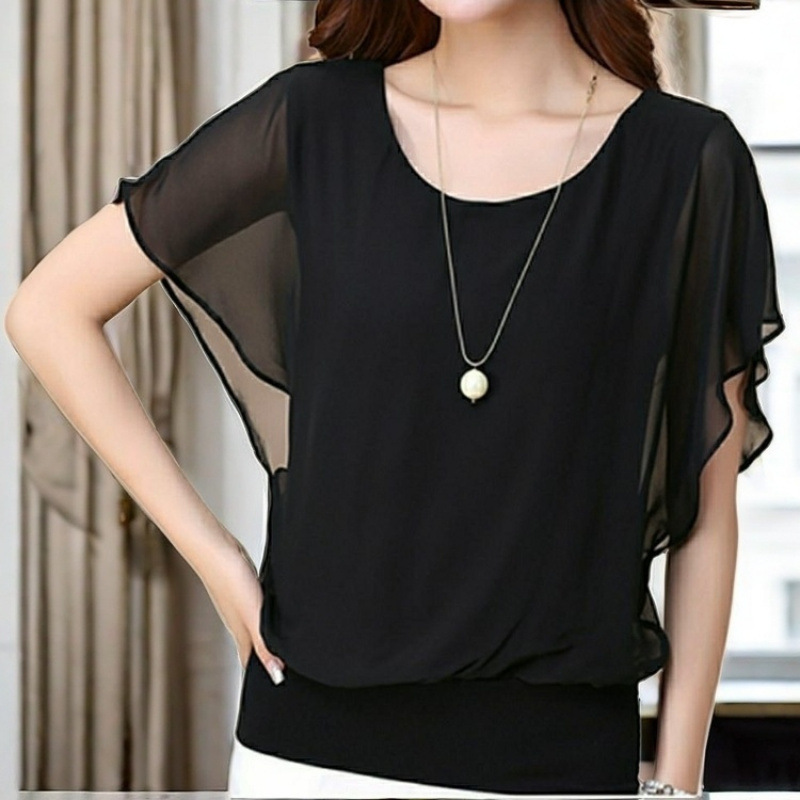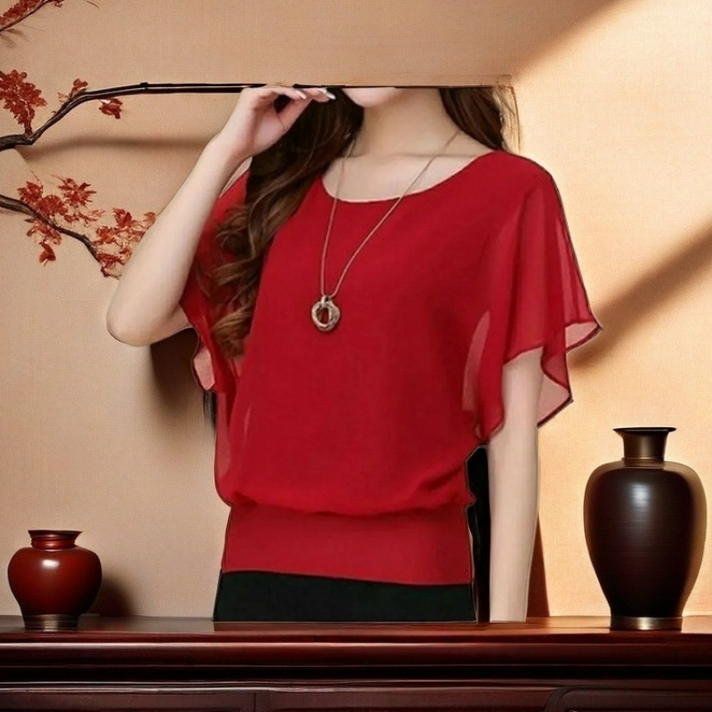 봄과 여름 새로운 플러스 사이즈 여성 통통녀 여름 배트 모빌 셔츠 반팔 여성용 티셔츠 느슨한 슬리밍 쉬폰 셔츠 탑