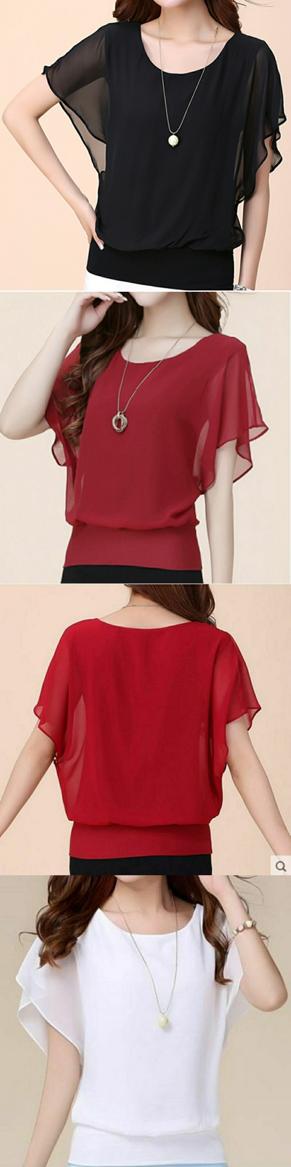 봄과 여름 새로운 플러스 사이즈 여성 통통녀 여름 배트 모빌 셔츠 반팔 여성용 티셔츠 느슨한 슬리밍 쉬폰 셔츠 탑스토어 가기