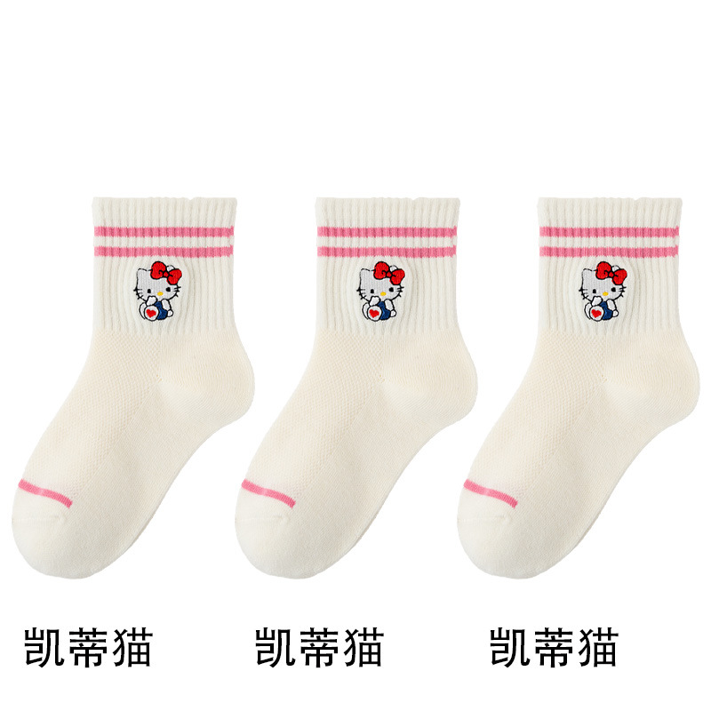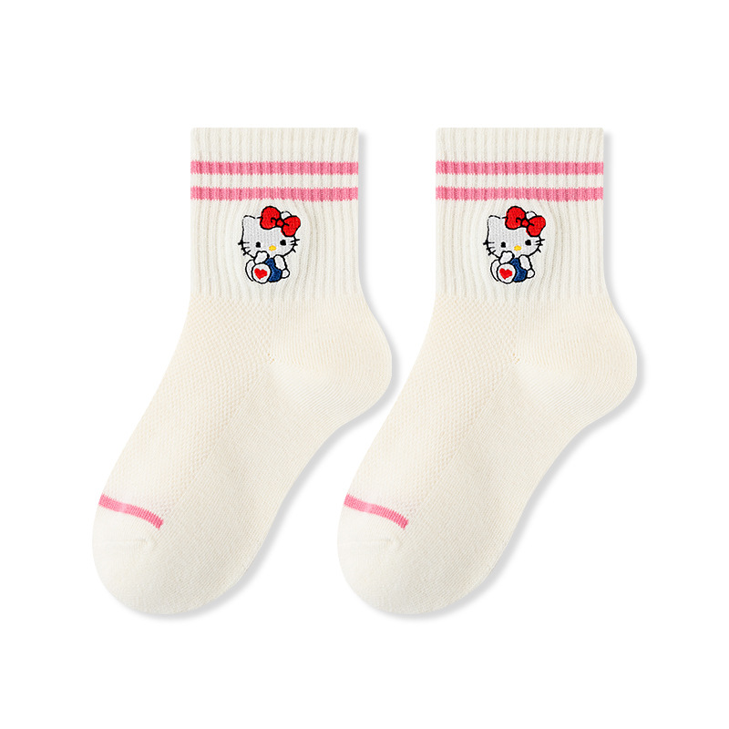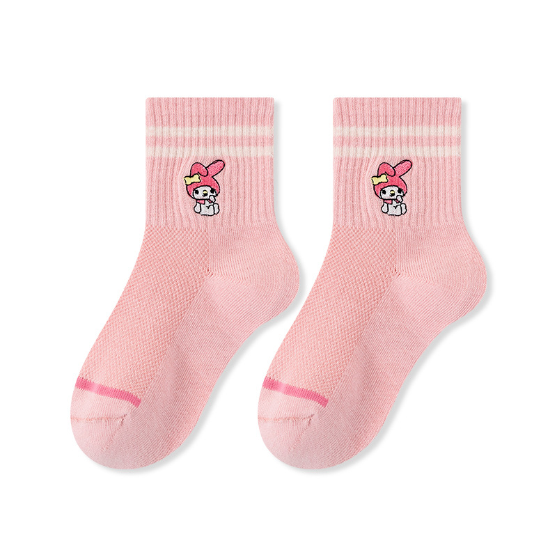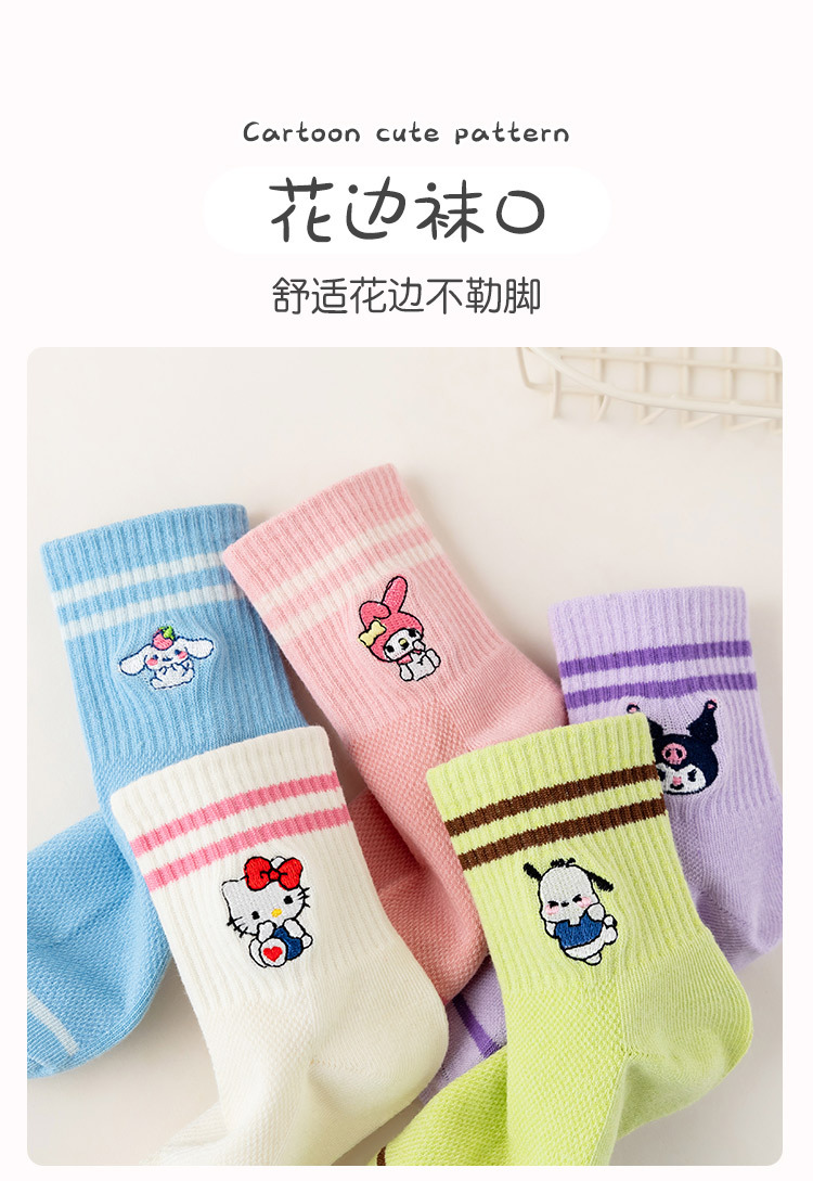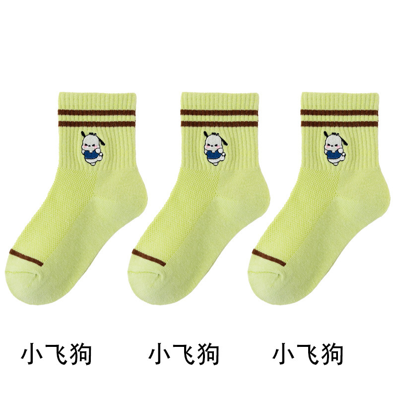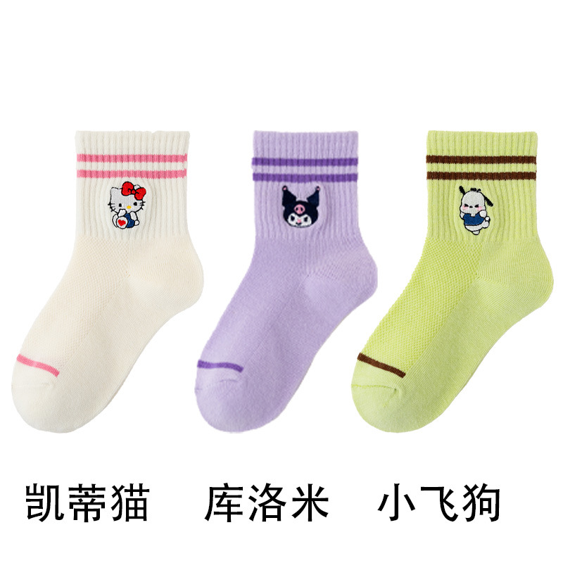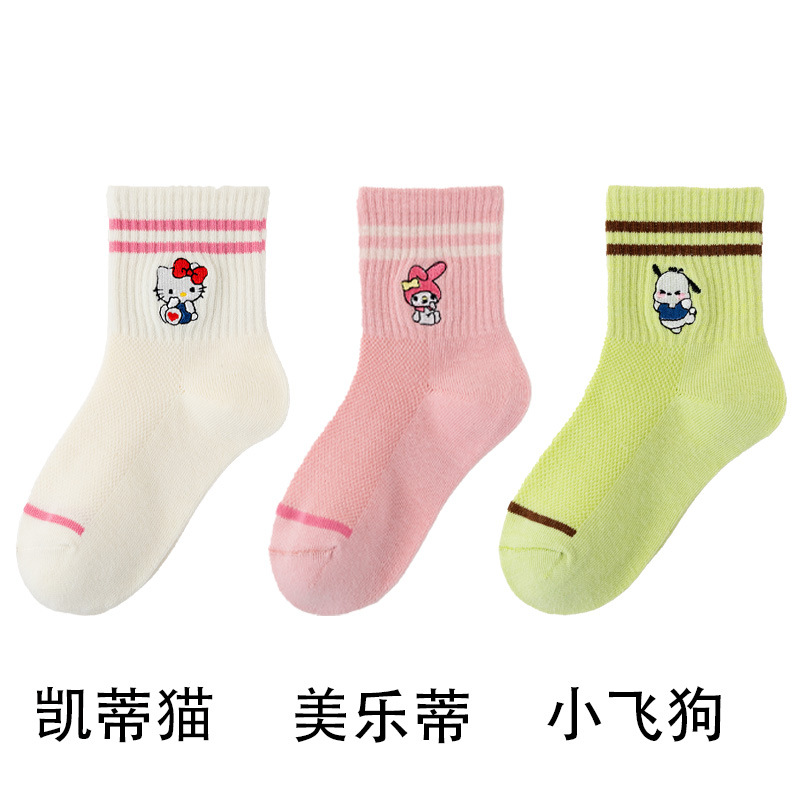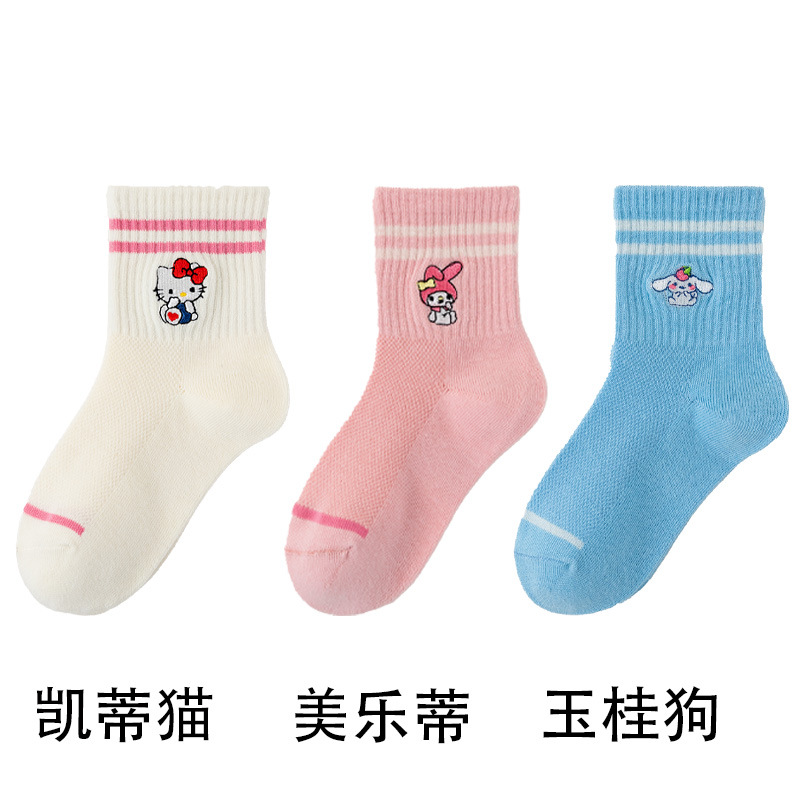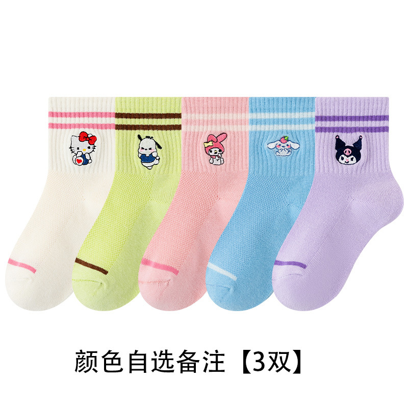 어린이 양말 봄과 여름 얇은 클래스 면화 소녀 공주 만화 귀여운 자수 메쉬 중간 양말 통기성 탈취제