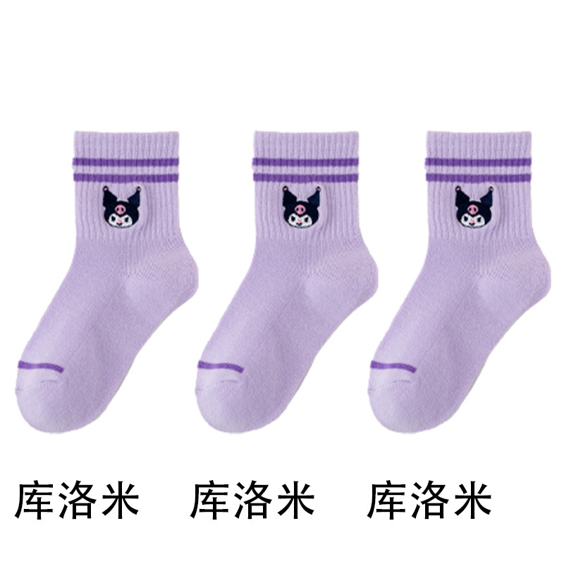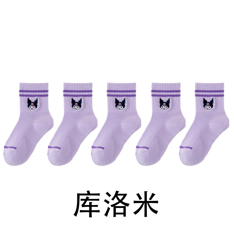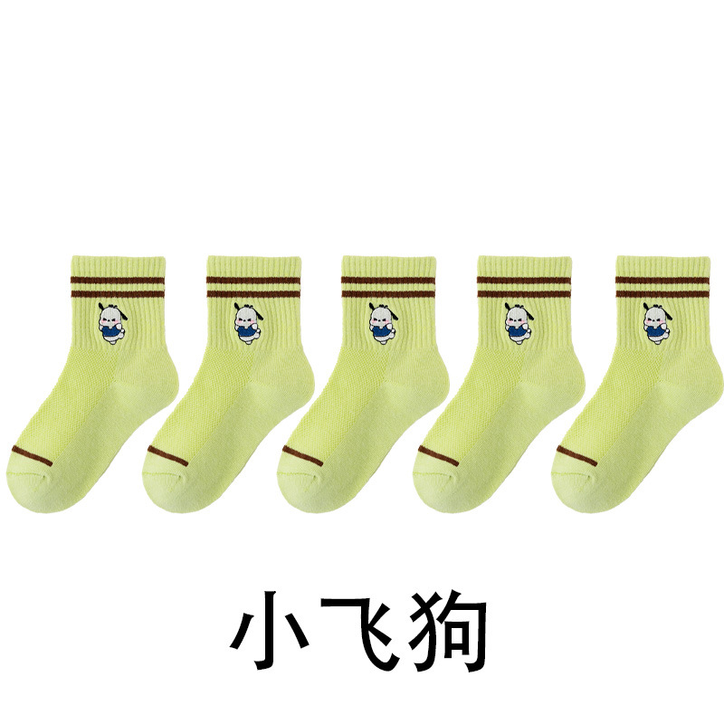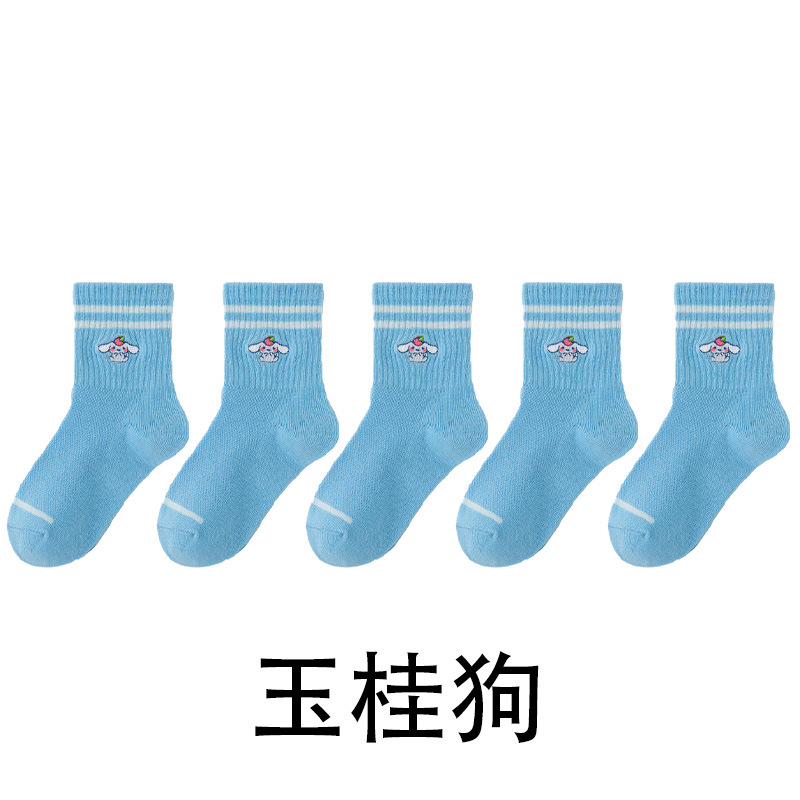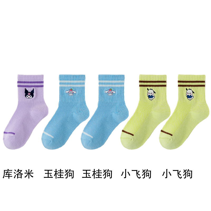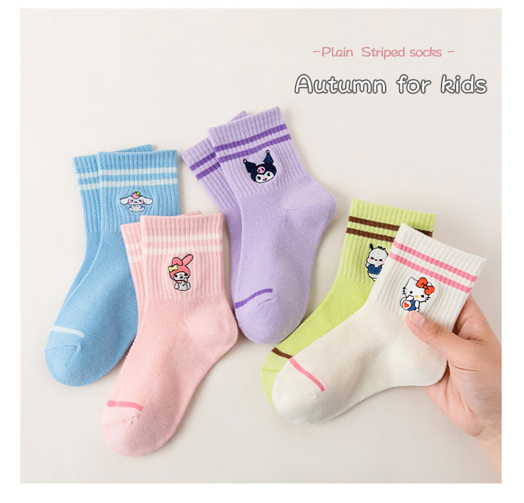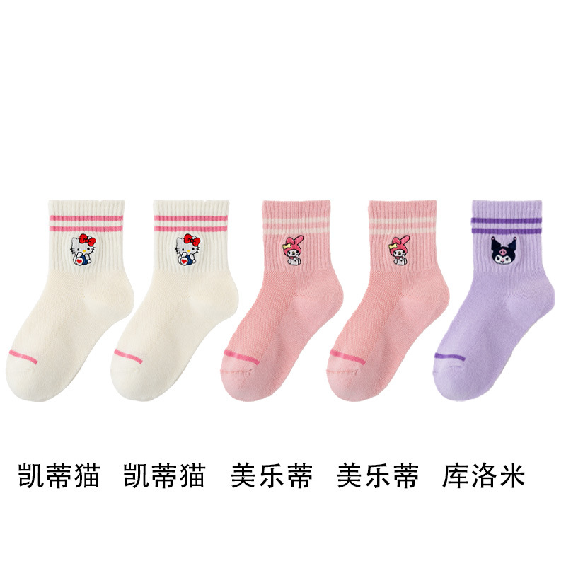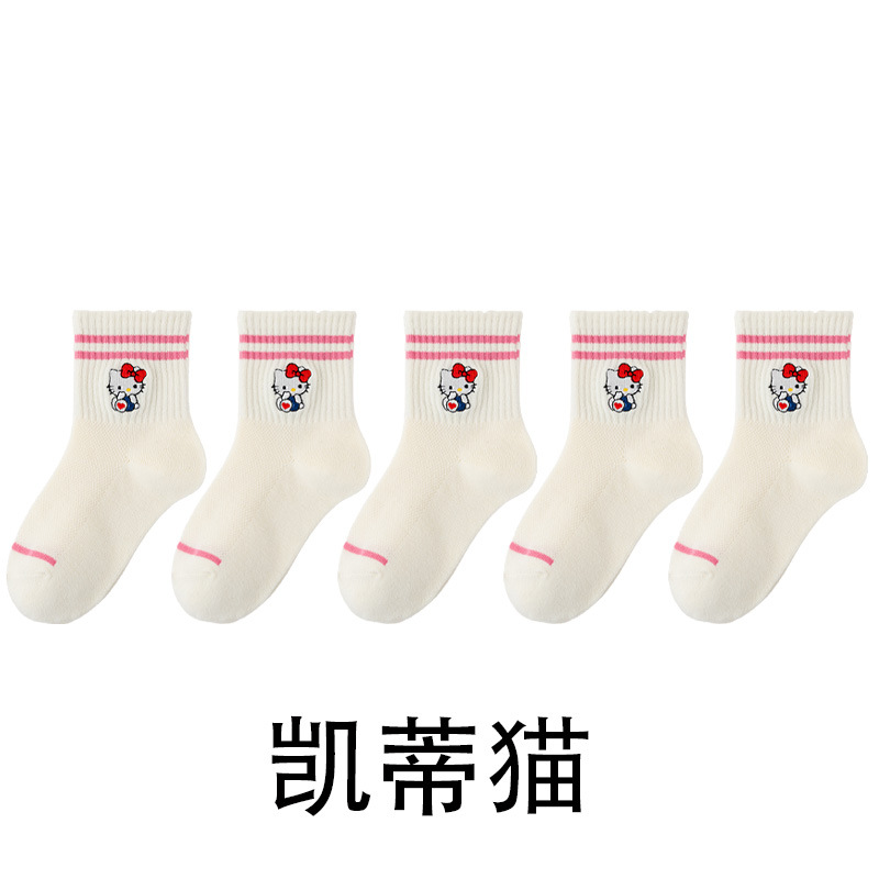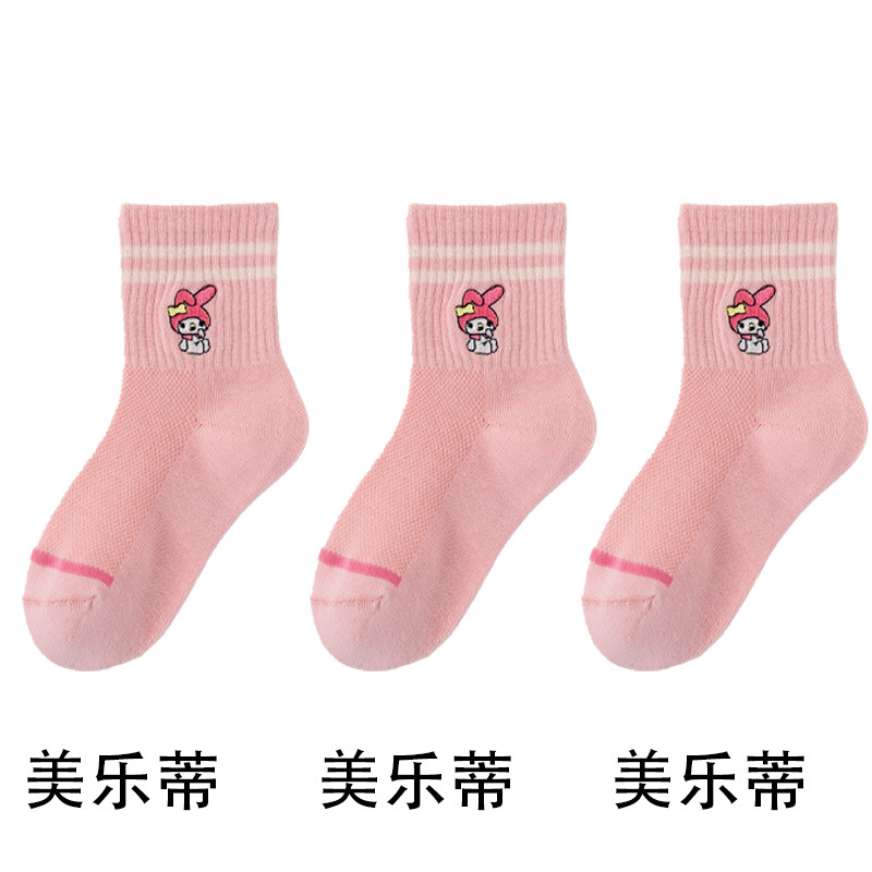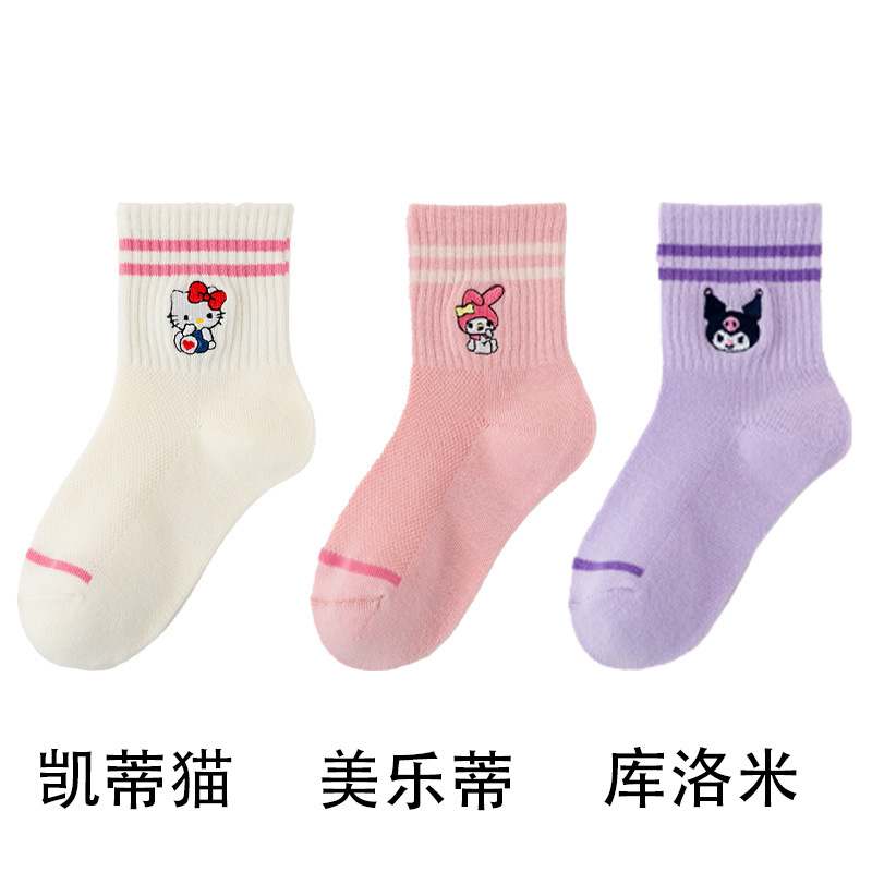 어린이 양말 봄과 여름 얇은 클래스 면화 소녀 공주 만화 귀여운 자수 메쉬 중간 양말 통기성 탈취제