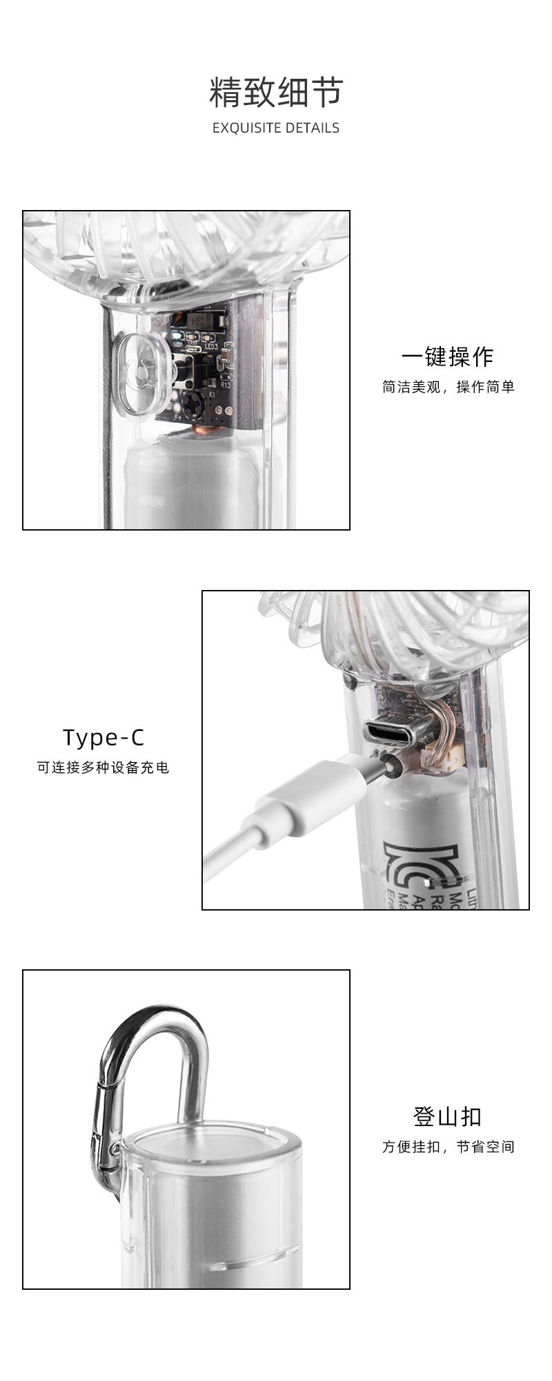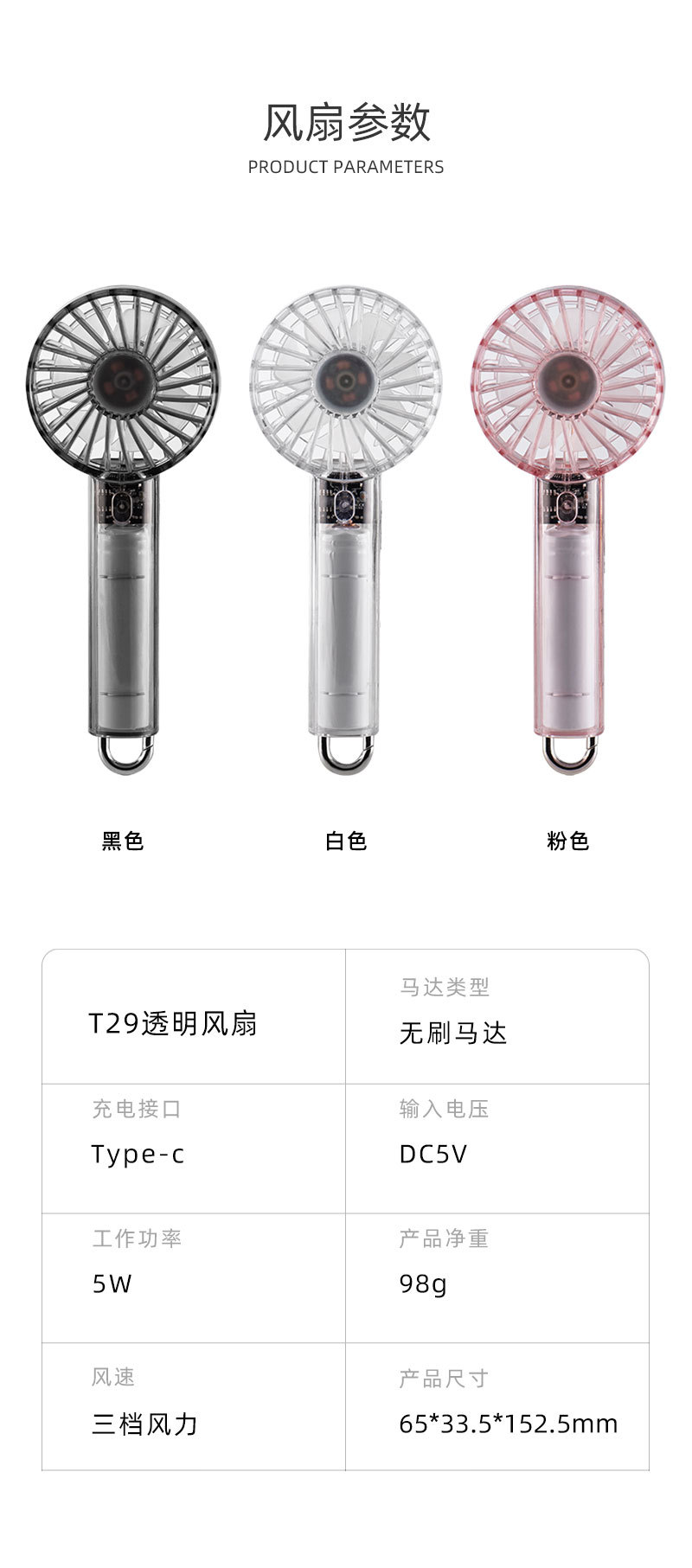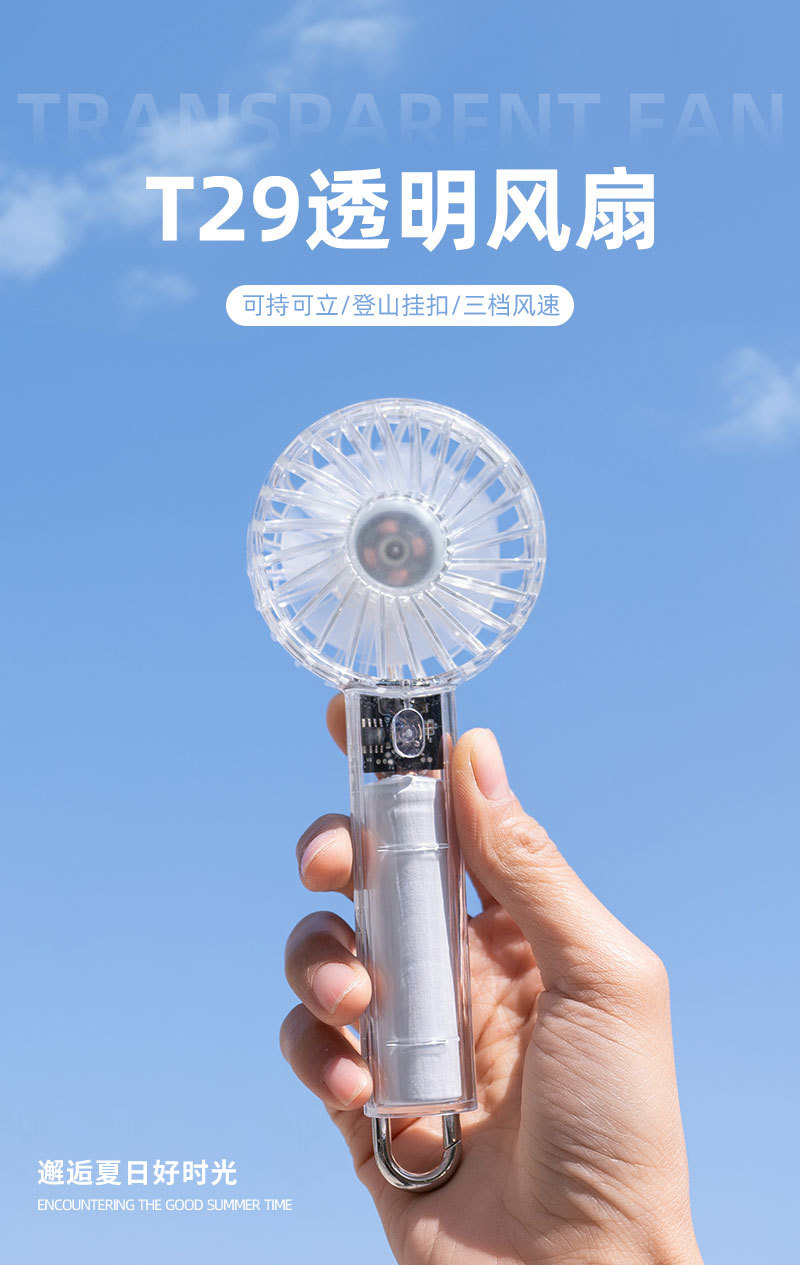 Su Mi 미니 투명 팬 USB 충전식 선물 휴대용 팬 크로스 국경 야외 등산 휴대용 작은 팬