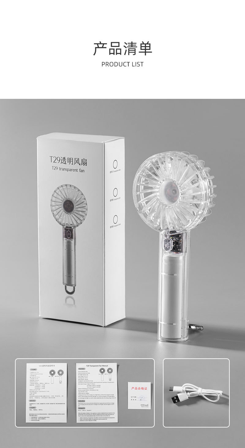 Su Mi 미니 투명 팬 USB 충전식 선물 휴대용 팬 크로스 국경 야외 등산 휴대용 작은 팬스토어 가기