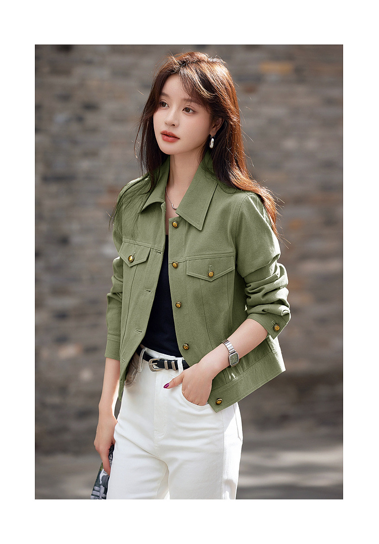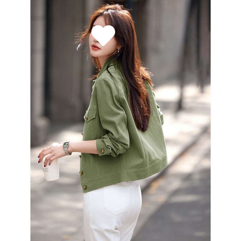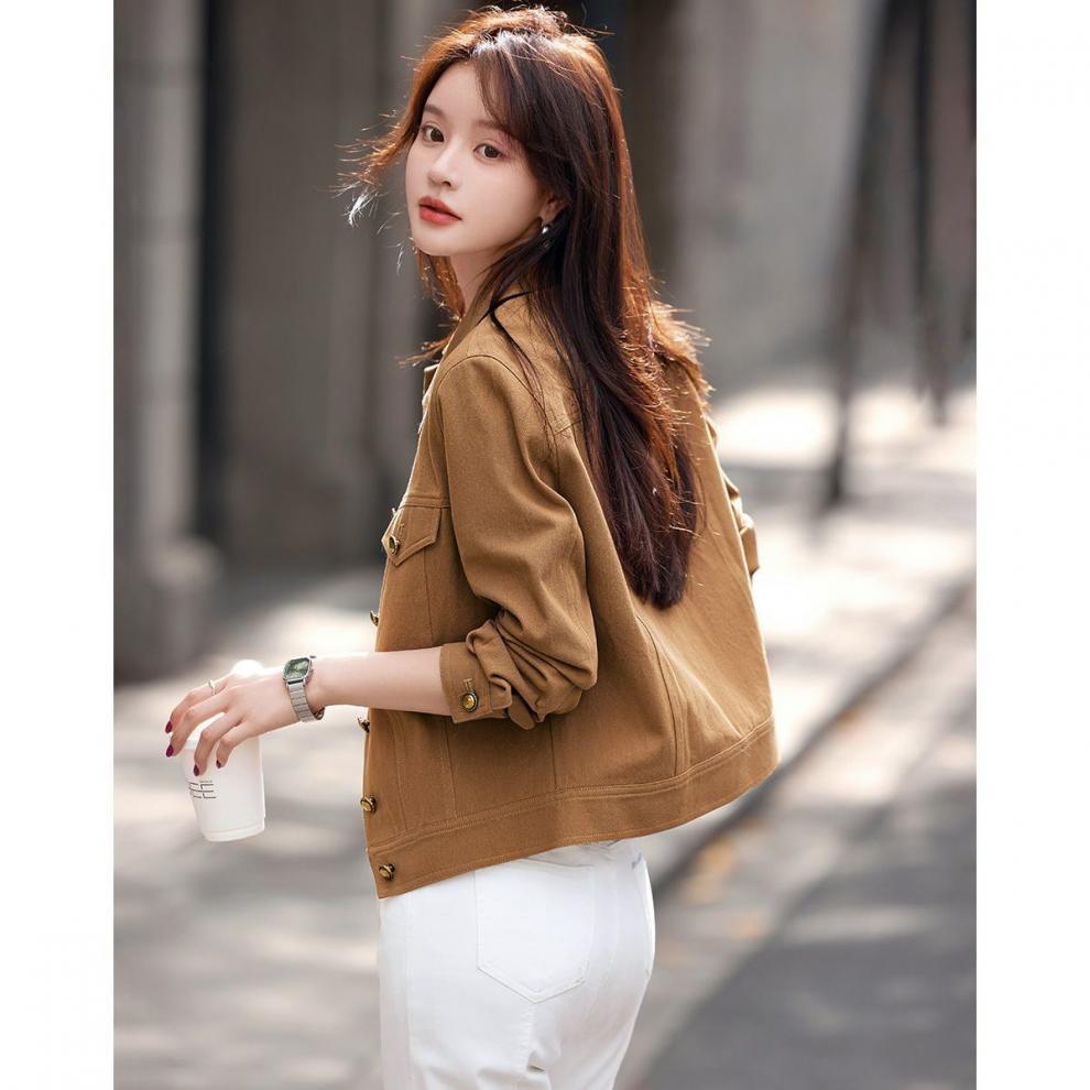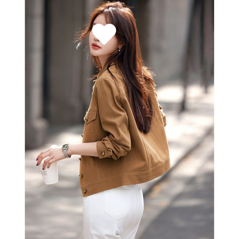 캐주얼 디자인 센스 작업복 스타일 데님 재킷 2025 봄 새로운 벤트 헴 재킷 여성 자켓스토어 가기