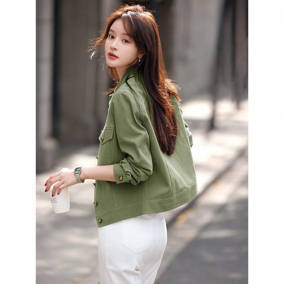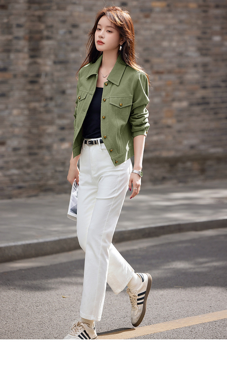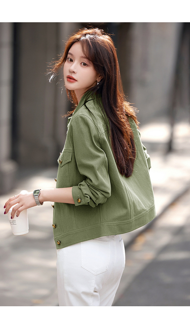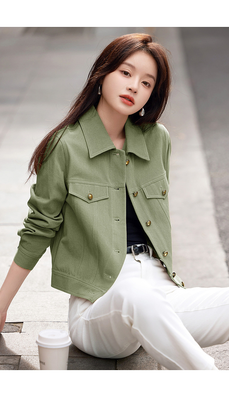 캐주얼 디자인 센스 작업복 스타일 데님 재킷 2025 봄 새로운 벤트 헴 재킷 여성 자켓스토어 가기
