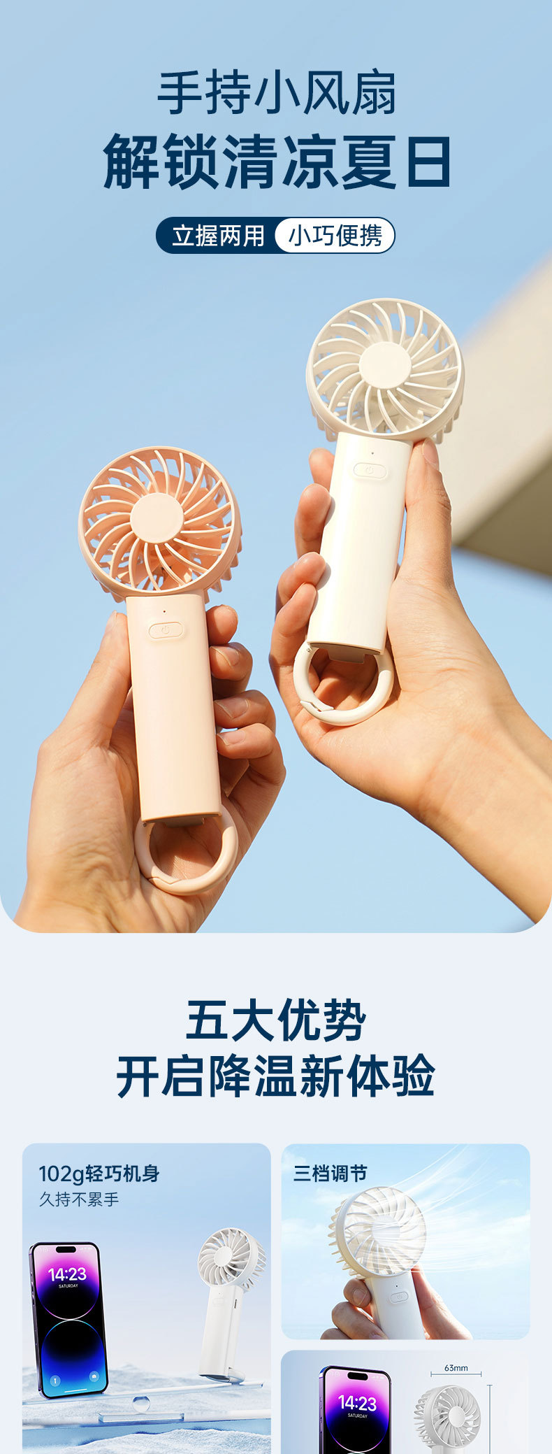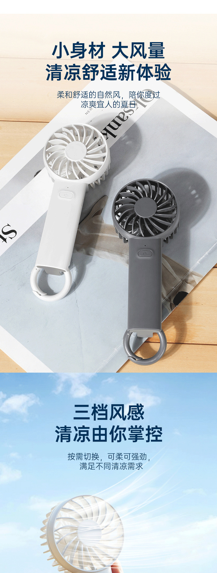 Su Mi 핸드 헬드 팬 USB 대형 바람 충전 버클 스탠드 데스크탑 수직 교수형 휴대용 소형 팬스토어 가기