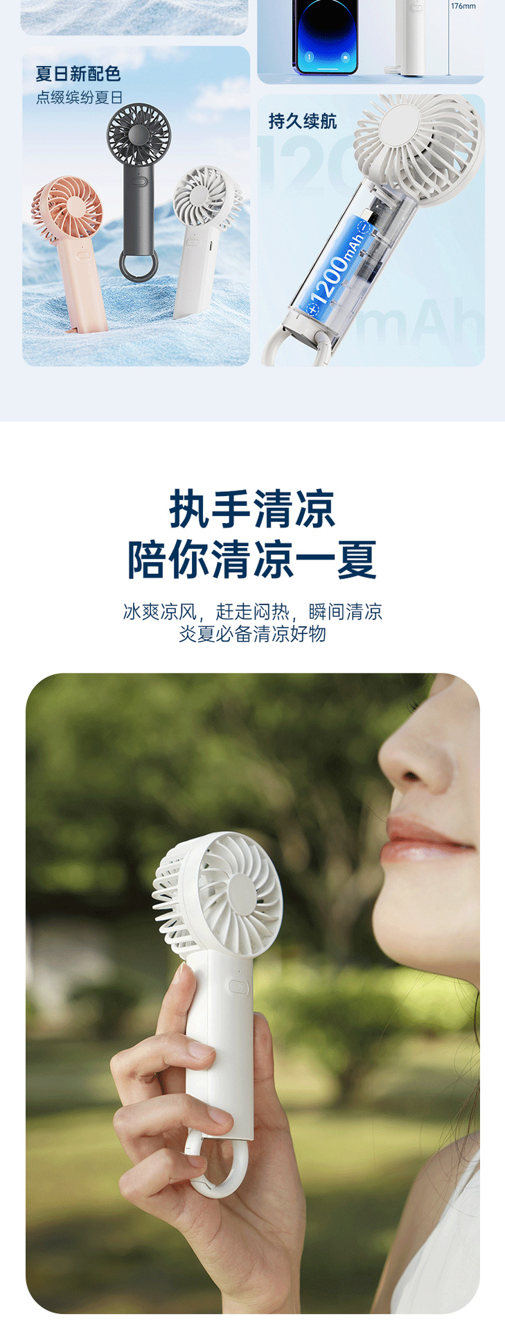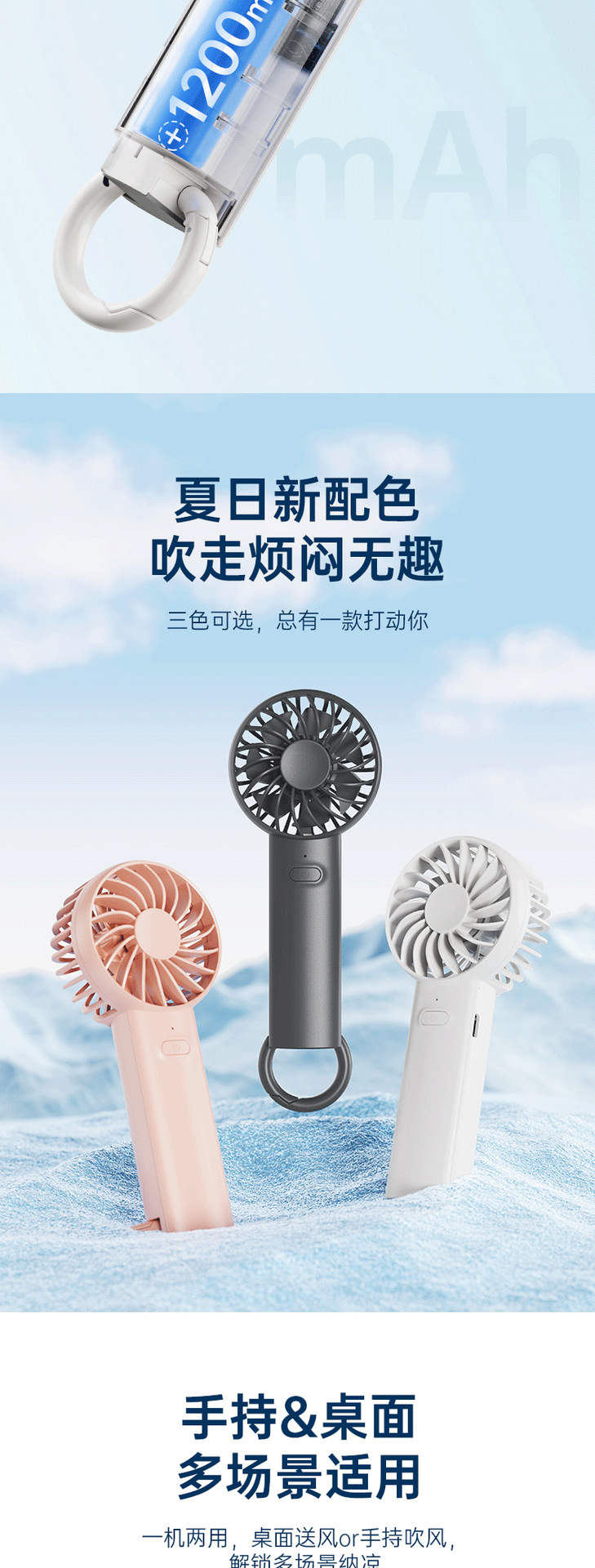 Su Mi 핸드 헬드 팬 USB 대형 바람 충전 버클 스탠드 데스크탑 수직 교수형 휴대용 소형 팬