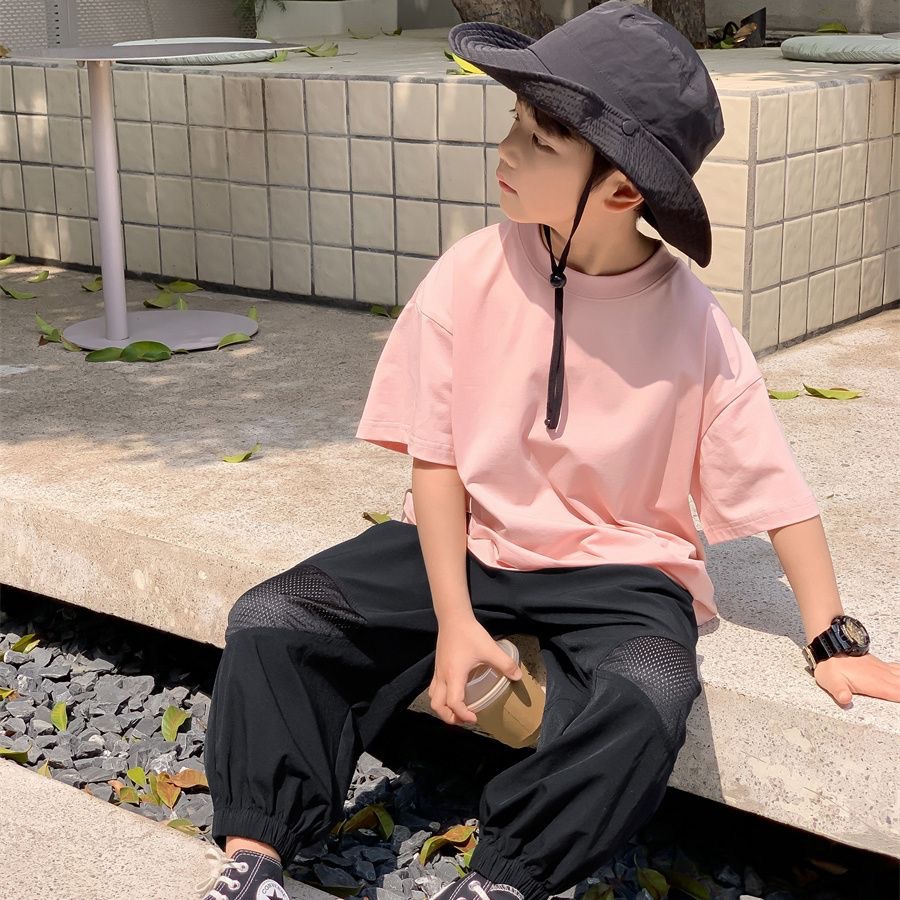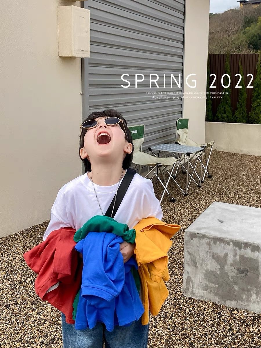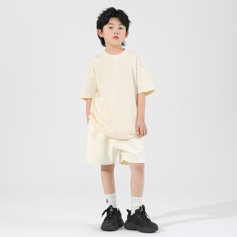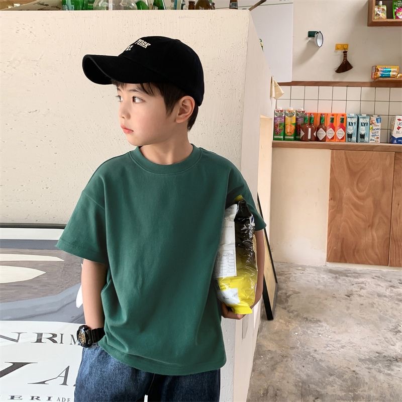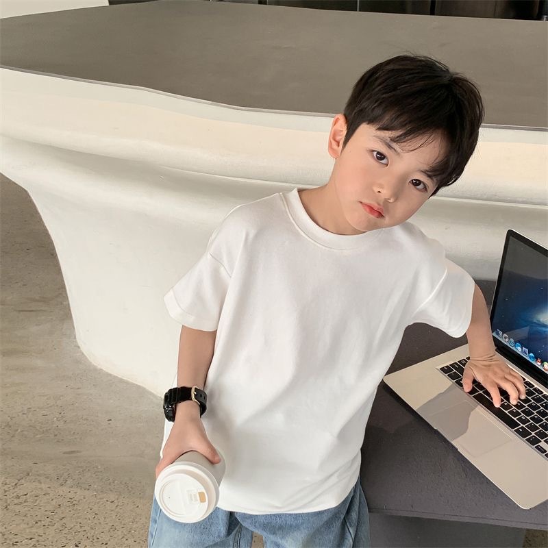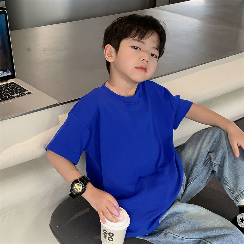 260g 이중사 순면 아동복 남아 반팔 티셔츠 여름 아동 반팔 상의 유아용 이너웨어 중소형 아동용스토어 가기
