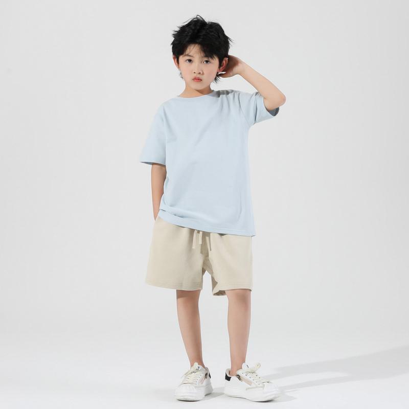 260g 이중사 순면 아동복 남아 반팔 티셔츠 여름 아동 반팔 상의 유아용 이너웨어 중소형 아동용