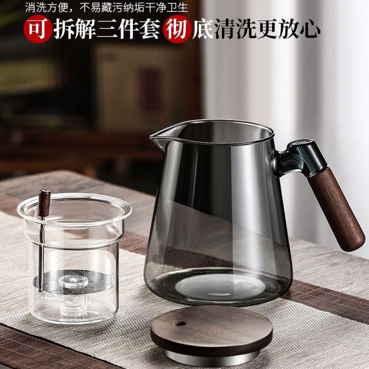 ✅Piaoyi 컵 주전자 2024 새로운 호두 핸들 유리 라이너 원 키 필터 프레스 타입 주전자스토어 가기
