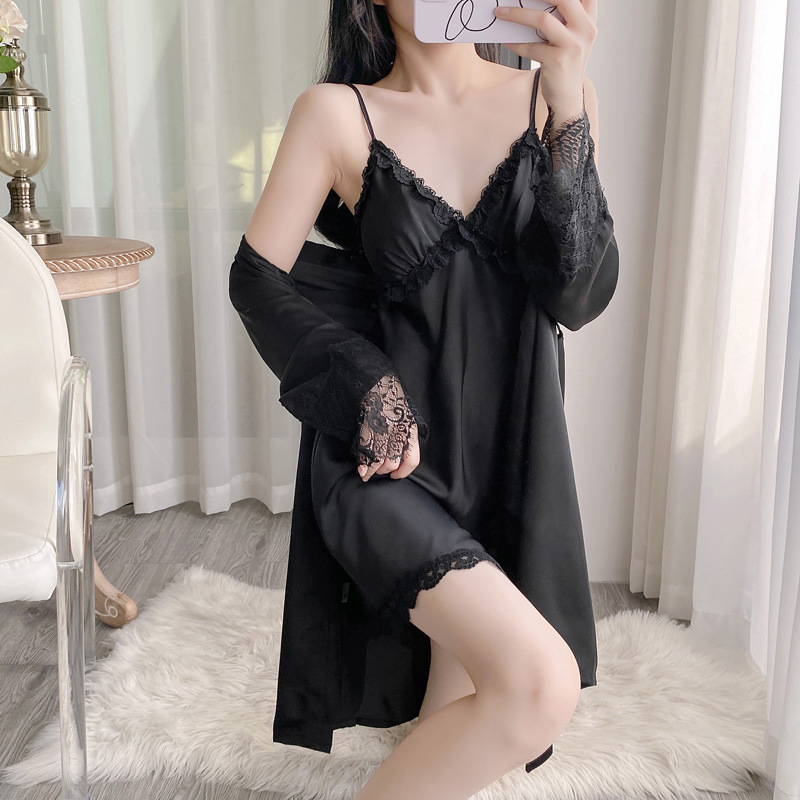 • (C62/3) 새틴 싱글 나이트가운-하이엔드 블랙