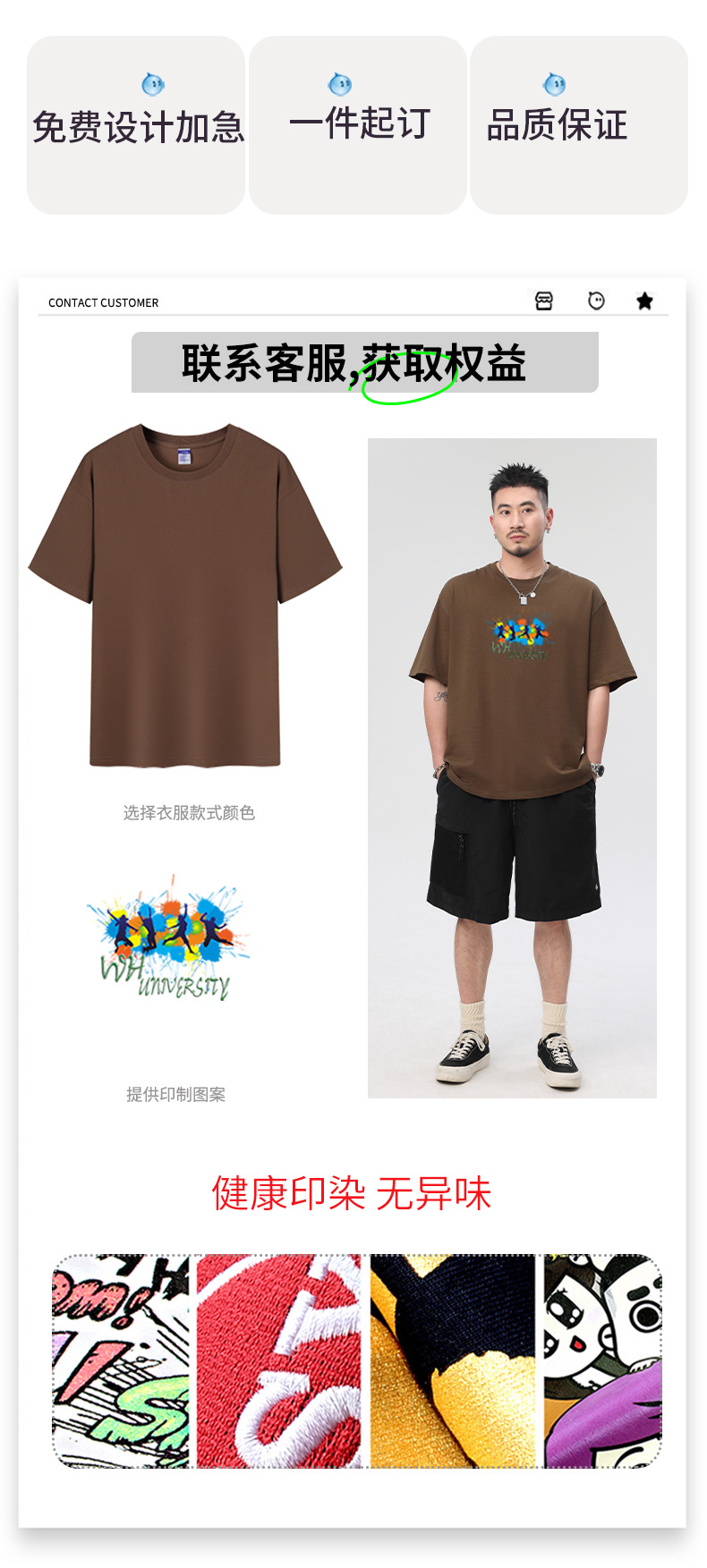 순수한면 바지 티셔츠 인쇄 로고 여름 둥근 목 짧은 소매 회사 그룹 파티 문화 셔츠 자수 패턴