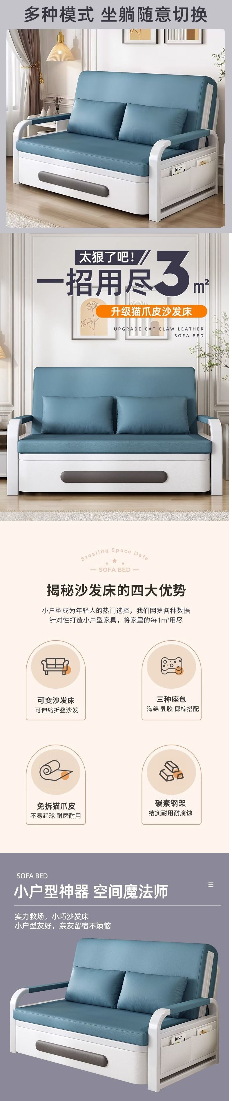 소파 침대 통합 이중 목적 텔레스코픽 푸시 풀 다기능 고양이 발톱 천 침대 접이식 소파 의자 임대 방 낮잠 침대스토어 가기