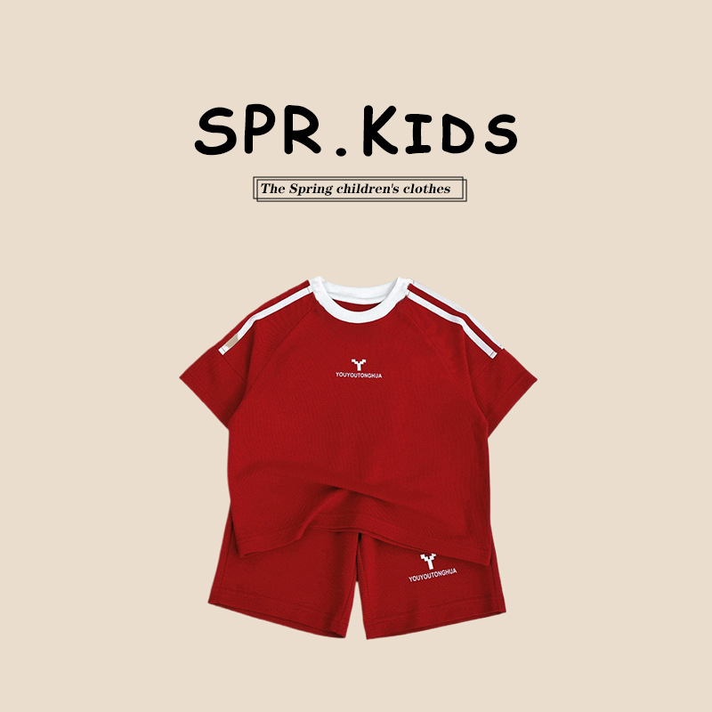 여름용 남아 레터링 반팔 스포츠 캐주얼 세트