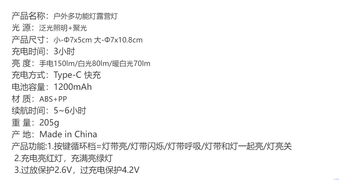 • 다기능 캠핑 분위기 조명