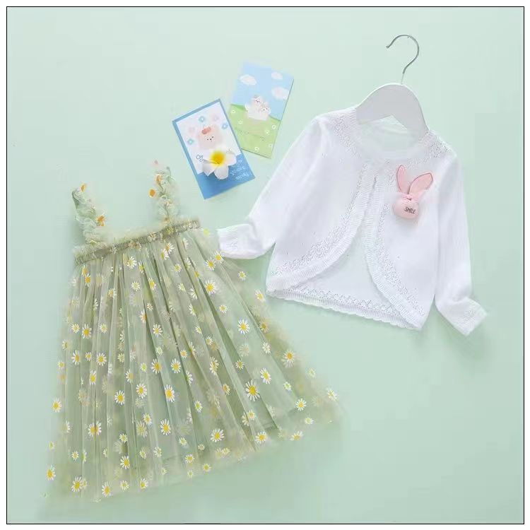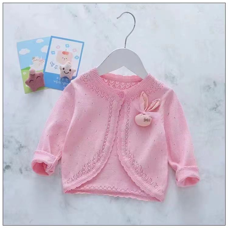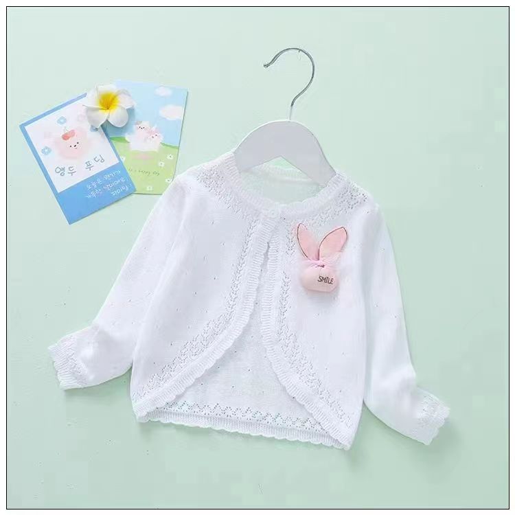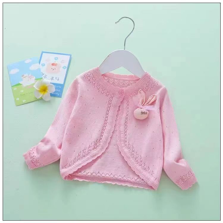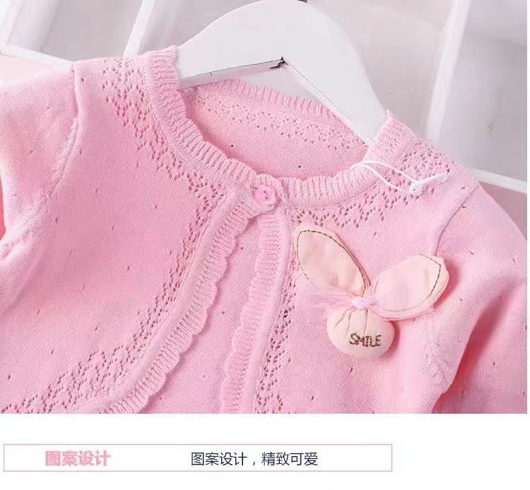 어린이 및 소녀 에어컨 셔츠 니트 아기의 할로우 어깨 허리 코트 봄과 여름 태양 보호 의류 긴 소매 카디건 작은 목도리스토어 가기