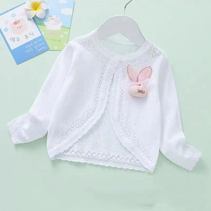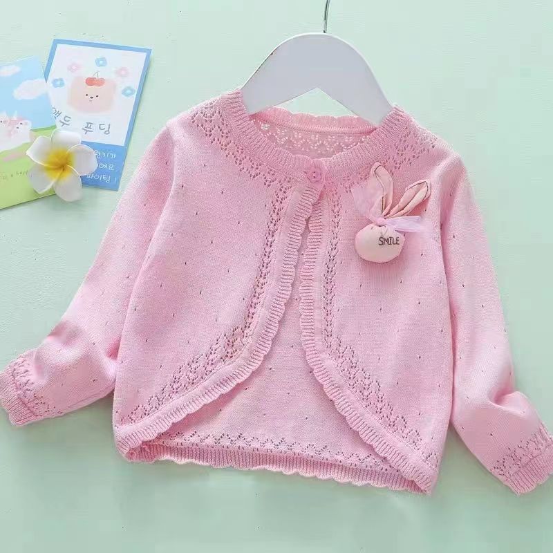 어린이 및 소녀 에어컨 셔츠 니트 아기의 할로우 어깨 허리 코트 봄과 여름 태양 보호 의류 긴 소매 카디건 작은 목도리